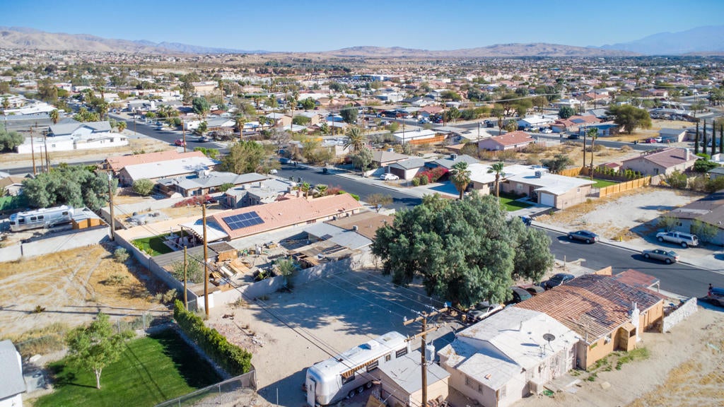 Rare opportunity to own a perfect vacant lot for a Single-Family Residence or Multi-Family / Income property. Breathtaking panoramic mountain view in the middle of the city. This vacant lot is R2 Zoning with a water meter in place. Minutes from Palm Springs, Short Term Rentals OK with permit. Some tax incentives and benefits offered from DHS to build. Multi-use zoning- opportunities are endless.Buyer and buyer's agent to verify all information with the city or county for allowable uses and requirements and rely on their own investigations. **Buyer responsible for checking zoning, utilities, permits and exact property boundaries. ****