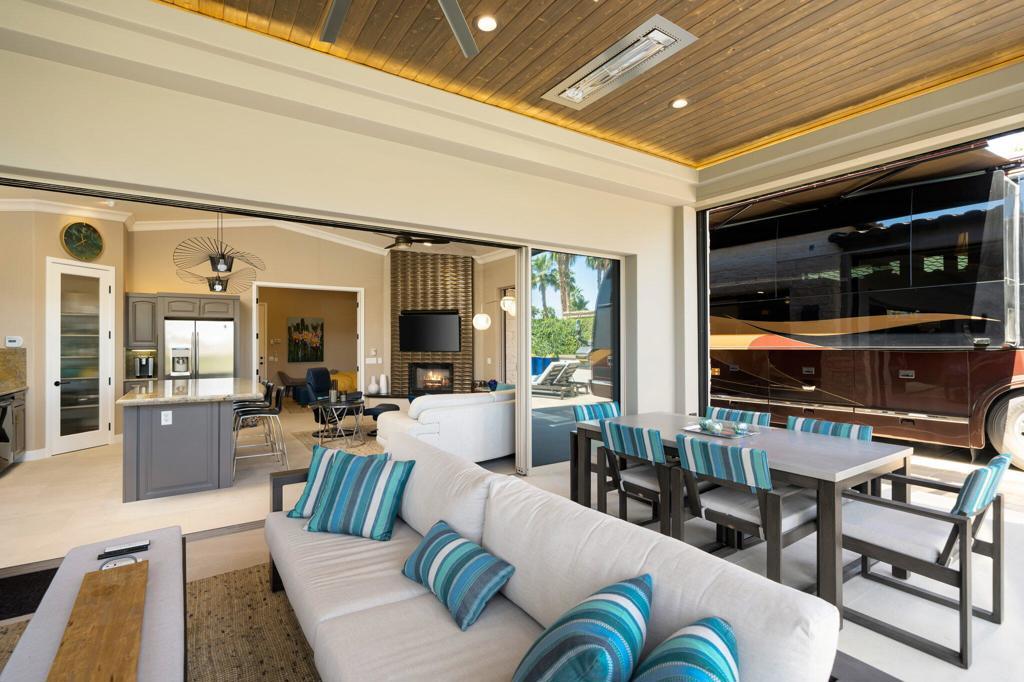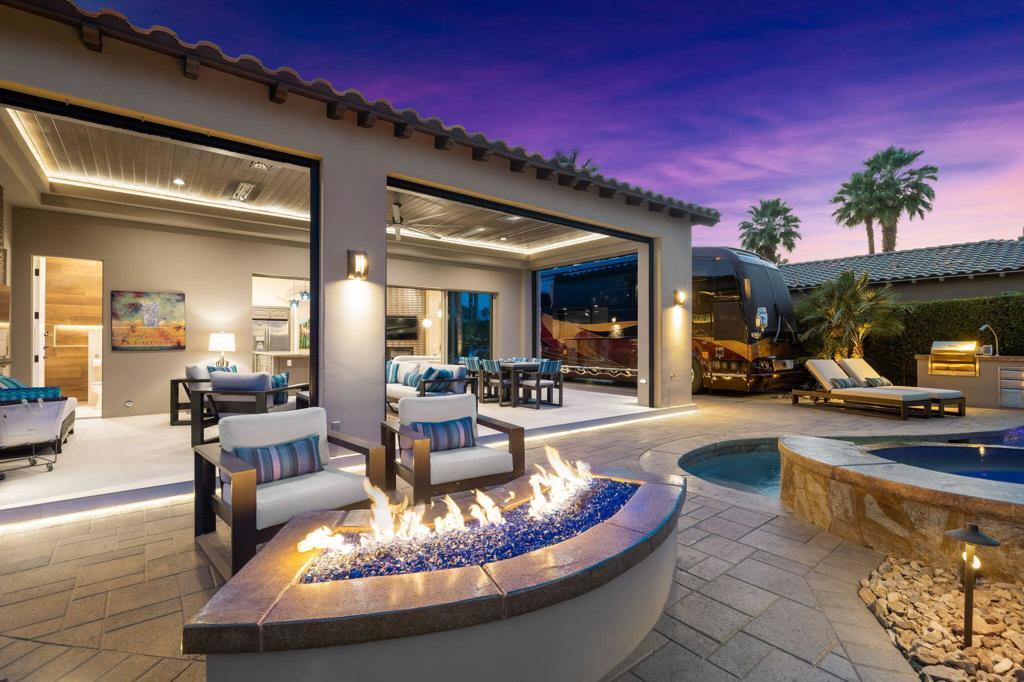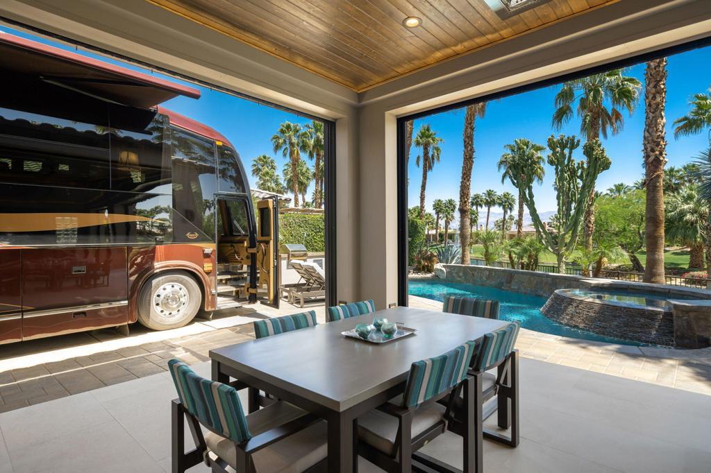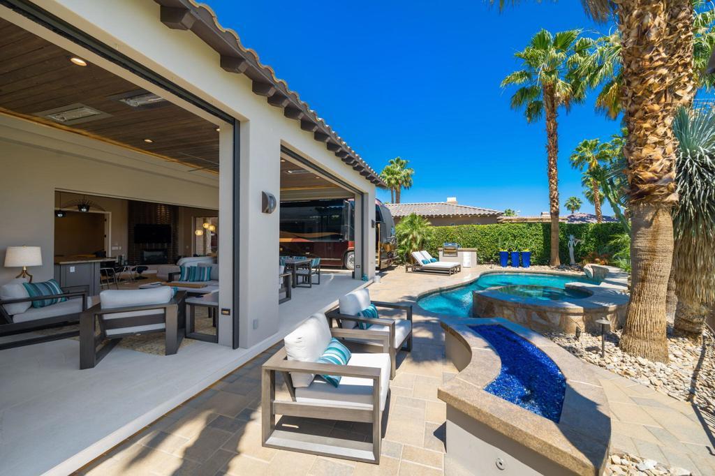 #106 DESERT SHORES RESORTOne of the most spectacular motorcoach properties you will ever find!Totally reimagined Exterior Elevation and Additions completed in 2021.The most lavish Outdoor Living Space you will find with:15' x 32' Solid-Covered PatioVoluminous 11' CeilingsRaised Patio Floor matches interior floor height for seamless floor from indoor to outdoor living spaces.Full Bathroom for dinner guests and easy access from swimming pool.Patio includes both Electric Sunshades + Security Shutters which enclose the entire outdoor living patio keeps the patio safe and clean. (Security Shutters are included on all windows and sliders throughout the property)Built-In Space Heaters + Misting System.Cantilevered Patio Floor with underlighting.Beautiful Paverstone driveway and patio spaces and Epoxy Coach Pad.Freeform Pool with Quartize Spa with new Pebble Finish offers Raised Bond Beam at back of pool for privacy + LED Lighting and Pentair Remote Control System.Blue-Glass Fire Pit.BBQ grill area with wood-pellet memphis Smoker/Grill.Entry Gate for Privacy.Raised Santa Barbara Smooth Stucco exterior with Eldorado Stone Trim.Newer Landscaping and Ground Lighting.Raised RV HookUp Pedestal.Wrought-Iron Fencing to keep your Doggies secure.INTERIOR FEATURESRecent and Beautiful Remodeled Interior.Great Room/Kitchen opens to spectacular outdoor living spaces.Upgraded Granite Slab Counters.
