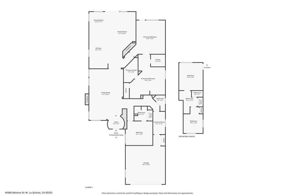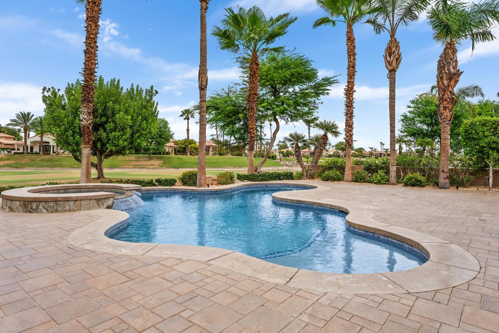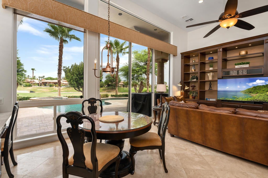 Your ultimate Desert retreat awaits with this exceptional Encanto II estate at Rancho La Quinta Country Club, offering 4 bedrooms and 3.5 bathrooms, including a private, detached two-bedroom casita. Step into refined desert living with travertine flooring throughout the main spaces and baths, complemented by newer bedroom carpeting. The gourmet kitchen features stunning quartzite counters, a custom glass tile backsplash, and stainless appliances--a perfect canvas for the discerning chef. The outdoor sanctuary is designed for grand entertaining around the shimmering free-form pool on an expansive patio. Enjoy spectacular, uninterrupted golf and lake views down the 14th hole of the renovated Jones course, framed by the dramatic Chocolate Mountain Range--indoor-outdoor living perfected. Rancho La Quinta Country Club offers a world-class environment. A Sports Membership is included with HOA dues, granting immediate access to the vibrant tennis and pickleball facility, pool complex, fitness center and the highly anticipated renovated clubhouse slated for completion mid-season. This is a rare, turnkey opportunity to acquire a premium, low-maintenance luxury lifestyle.