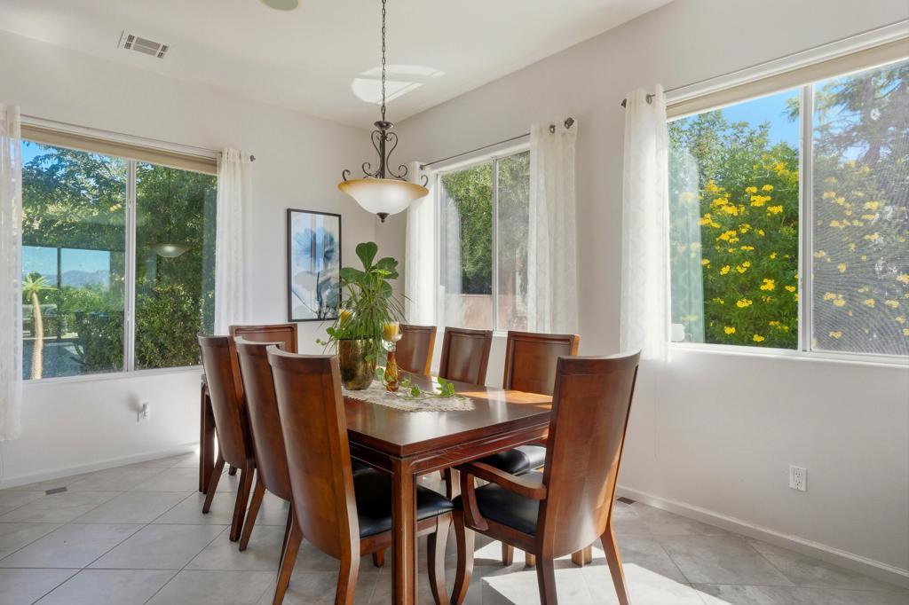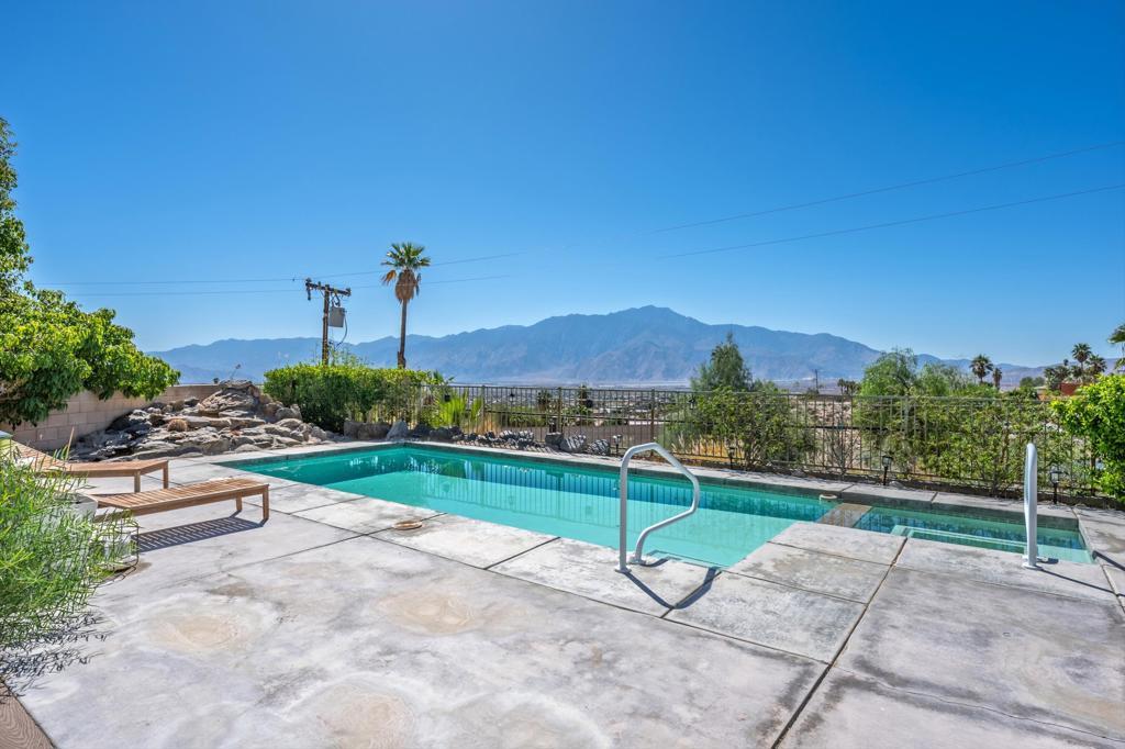 Million Dollar Mountain Views! Enjoy million dollar mountain views and an abundance of privacy from this exceptional home atop Spruce Street in this highly coveted hilltop Modern home. Contemporary designed exterior with two car attached garage with direct access from the home. This home is one of 5 homes at the end of Spruce Street in a quiet and private cul-de-sac. Exterior landscaping is desert scape for easy care and maintenance. There is a large pool and spa in addition to an outdoor fire pit and expansive pool decking with additional patio space. Inside you will immediately notice the amazing panoramic mountain views of Mount San Jacinto and surrounding mountains through the custom multi-paneled sliding glass doors. High ceilings allow you to take in the breathtaking sunsets and sunrises in this amazing open concept home. You will find four bedrooms and two bathrooms in addition there is a living room, and dining room. Enjoy lots of outdoor time in the spacious pool and spa that sits on this huge 10,454 square foot lot. The kitchen has granite slab counter tops and pendant lighting above the breakfast bar with counter seating for dining in addition to the large dining room area. The living room has a sleek fireplace and a fifth sliding door to the expansive outdoor space so you can take in all the exceptional views this home has to offer. There are porcelain tile floors for durability, easy care, and maintenance. Both bathrooms are large with dual sinks and lots of counter space. This home has lots of storage space too. There is a linen closet, separate laundry room, and pantry in the kitchen. This home has leased solar with approximately 10 years left on the lease, and the monthly lease payment is approximately $330. There is no HOA and this home is located on fee land so you own the land. Views like this are rare and hard to find. Call today to schedule your private showing to see this outstanding contemporary view home. Homes like this do not come on the market very often under a million dollars. So make this your golden opportunity to own a contemporary pool home with million dollar mountain views atop a hillside in an ideal location. Your friends and family will be wowed by these unbelievable panoramic mountain views.