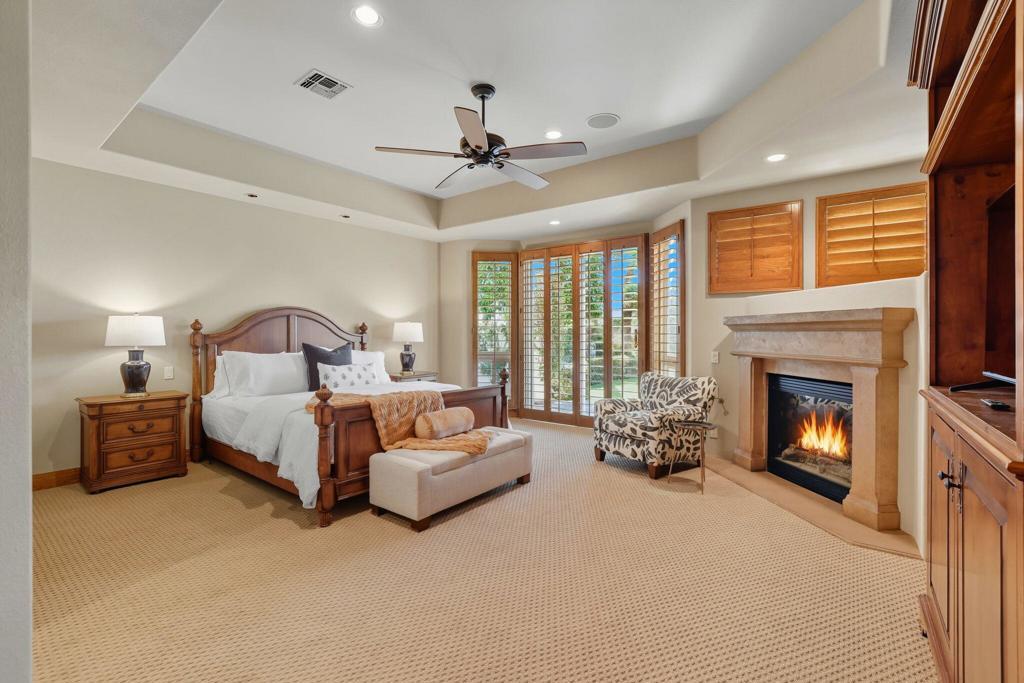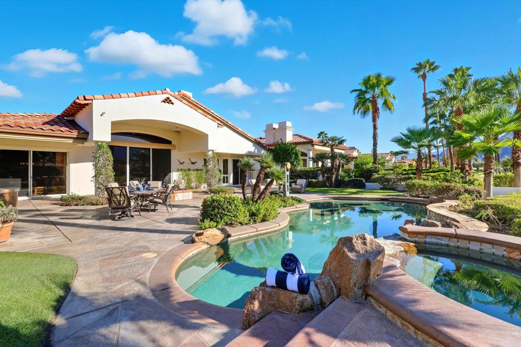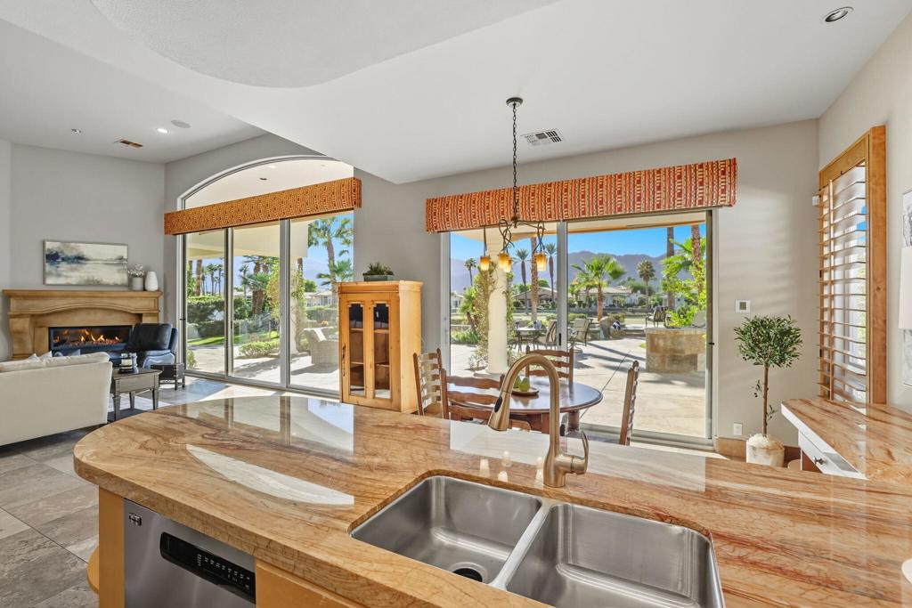 Experience desert living at its finest in this beautifully furnished home located on the 11th fairway of the Jones course in the prestigious community of Rancho La Quinta. This exceptional Montana 1 model offers breathtaking views of the Santa Rosa mountains with a lake and fairway right outside your door. The primary suite includes a king bed, luxurious ensuite bath and private patio access. The guest bdrm also offers a king bed with ensuite perfect for comfort and privacy. A dedicated office provides the perfect space for work or a quiet retreat. The detached casita offers two twin beds, a seating area and full bathroom - ideal for guests. The open concept great room boasts high ceilings, a beautiful fireplace and walls of windows framing the gorgeous golf course views! The gourmet kitchen features granite countertops and a large island perfect for entertaining. A separate dinning area completes the inviting interior layout.Step outside to a spacious patio designed for relaxation and entertaining, featuring a built-in fire pit surrounded by ample seating - perfect for enjoying cool desert evenings under the stars. A BBQ station makes outdoor dining effortless, while the gorgeous fresh water pool invite you to unwind and take in the views! This outdoor oasis captures the essence of desert resort living. Available Nov 1 2025 - May 1 2026