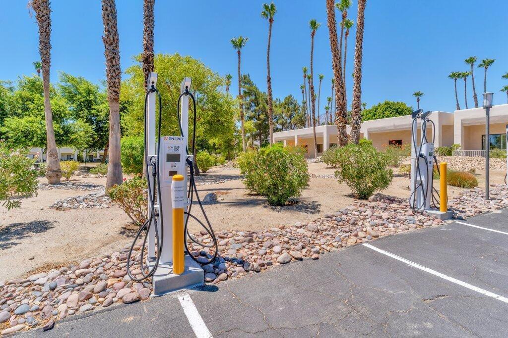 Discover an extraordinary lifestyle in this UPDATED 2-bedroom, 2-bath condo, with single car garage--part of a vacation destination originally conceived and built by Watt Industries and Princess Cruises. This beautifully designed home features an open-concept kitchen, dining, and living area, two private en-suite bedrooms positioned on opposite sides for maximum privacy, and both front and rear patios perfect for relaxing or entertaining.Located within the gated Desert Princess community, residents enjoy an unmatched array of HOA-included amenities. High-speed Internet and premium cable (including HBO and Showtime) with two DVR boxes are provided, along with grounds maintenance right to your door, exterior water, trash, recycling, and pest control. Homeownership also includes full membership to the Health and Fitness Center as well as access to tennis, pickleball, bocce, and basketball courts. The community boasts 34 sparkling pools and spas, a renovated fitness center, and a 27-hole PGA Championship golf course designed by David Rainville--rated among the best in the valley by Golf Digest. Owners receive preferred tee times, homeowner discounts, and enjoy no initiation or monthly social fees.Additional perks include discounts at the Clubhouse restaurant and bar, as well as at the on-site Doubletree by Hilton Golf Resort Hotel. Desert Princess offers 24-hour guard-gated security, electric vehicle charging ports, and meandering greenbelt walking paths with breathtaking mountain views. Ideally located just 10 minutes from downtown Palm Springs and 20 minutes from El Paseo's premier shopping and dining, this community combines tranquility with convenience. Short-term rentals are permitted, offering flexibility for personal enjoyment or investment potential. This home represents the perfect blend of comfort, elegance, and resort living in one of Palm Springs' most iconic communities.
