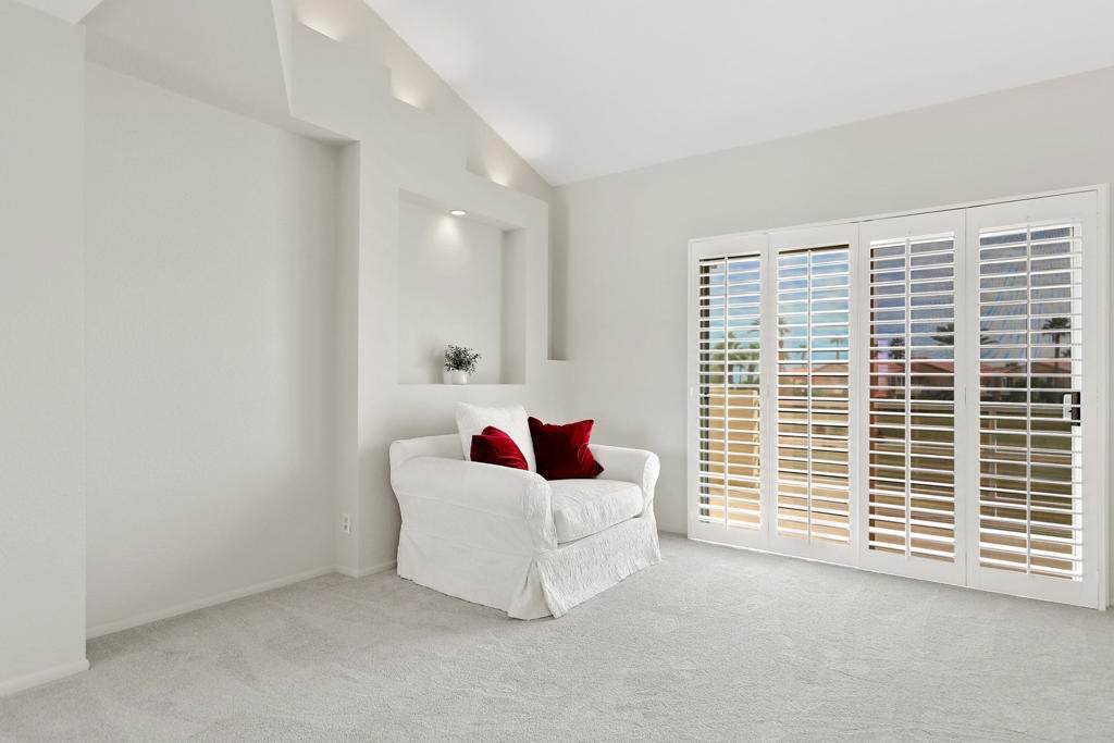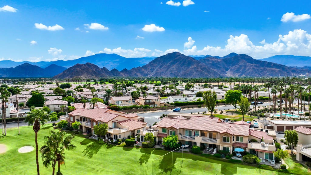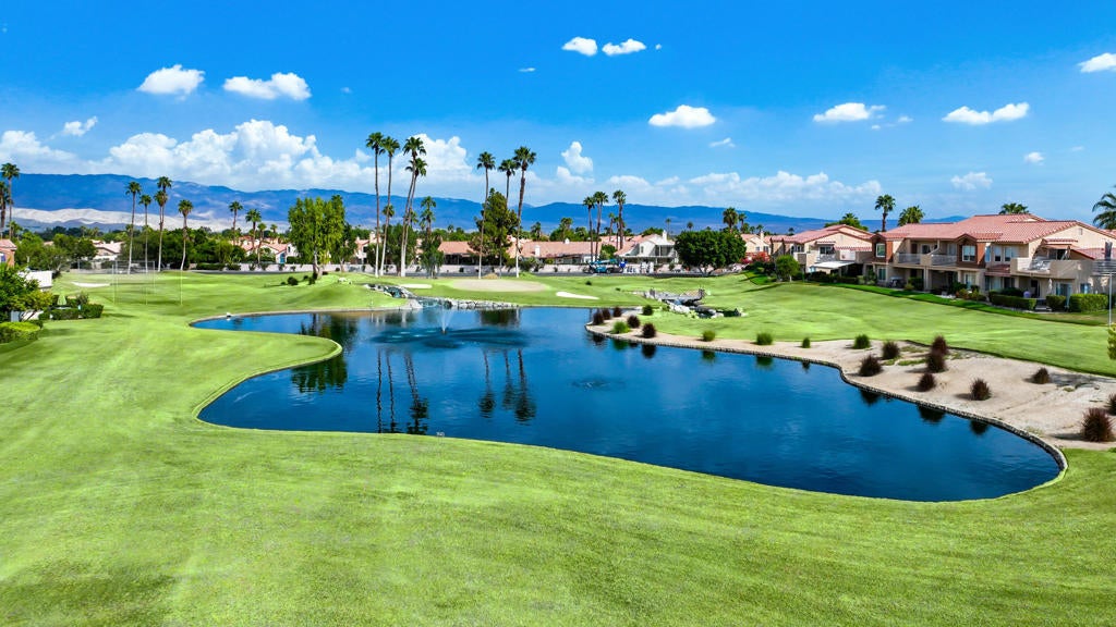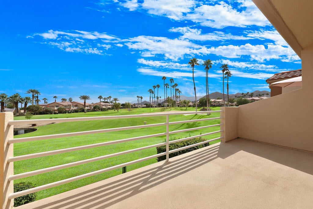 Breath taking Mountains, Lake, Green, and golf course views from this South Facing upstairs condo in Palm Royale Country club gated community!This new paint, new carpet 1 BR/1BA, 763 SF condo offers well appointed vaulted ceilings, lovely open concept with plenty of light, a convenient single car garage for privacy and added storage. Whether morning or evening there will be no disappointments of the views from your balcony.Palm Royale Country Club offers a multitude of amenities: unlimited golf of the Ted Robinson 18 hole, Par 3 golf walking course, Tennis and Pickleball courts, 6 pools/spas throughout the community for your convenience. Located across the street from the famous Indian Wells Tennis Gardens, host to the BNP Paribas Open Tennis Tournament. Minutes away from the finest shopping, dining, and all the great events that bring millions of people here to visit our beautiful valley. Hurry! This one is priced to sell!