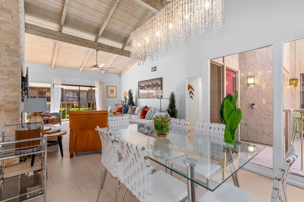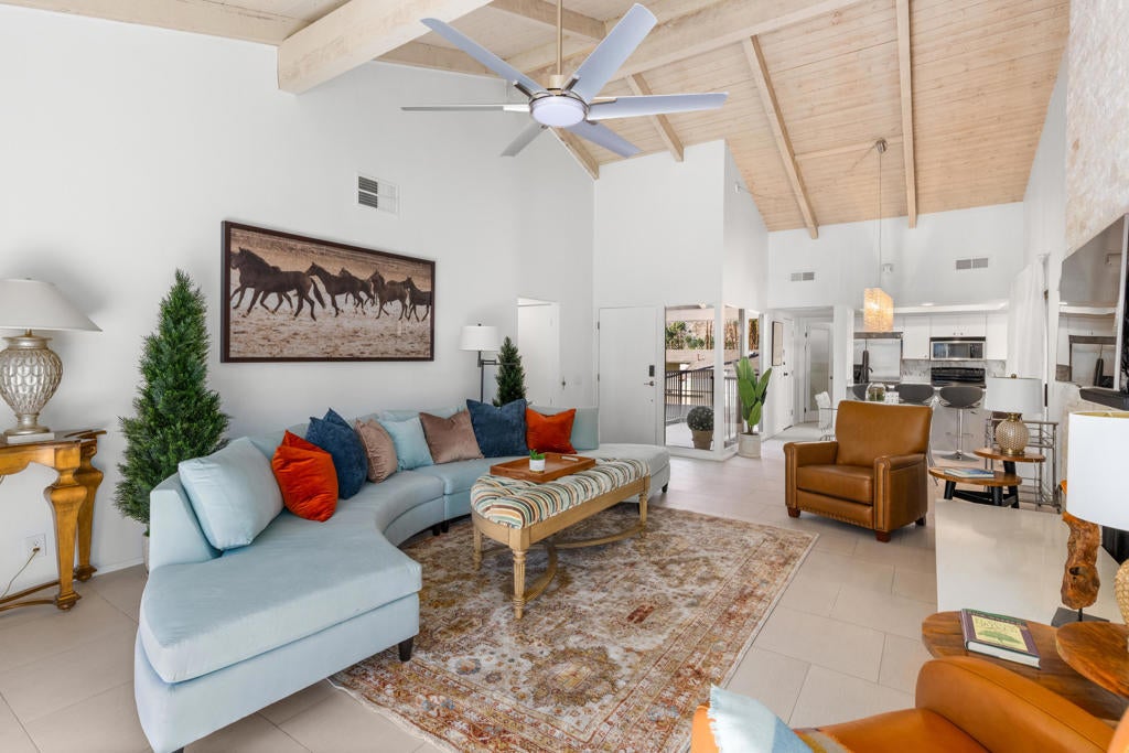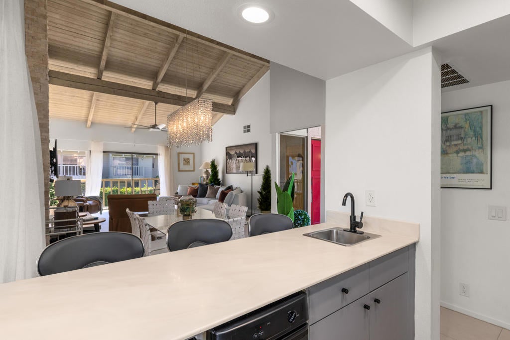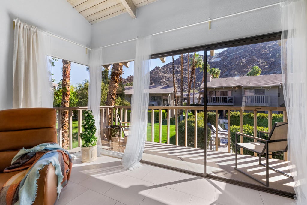 Long-Term or seasonal Lease Opportunity in Mountain Cove, Indian Wells! This remodeled two bedroom, 2 bath unit has vaulted ceilings and beautiful mountain views. The high ceilings and open floorplan create a bright, spacious, and airy living space that welcomes you as soon as you enter the front door. All rooms have balcony access providing ample outdoor space to enjoy the beautiful desert weather. The unit comes with a one car garage with space for storage. The community pool is located steps away from your front door. Tenant pays utilities; landlord covers HOA dues which includes water and trash. Available now--don't miss the chance to lease in desirable Indian Wells!
