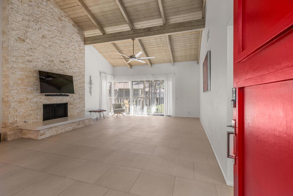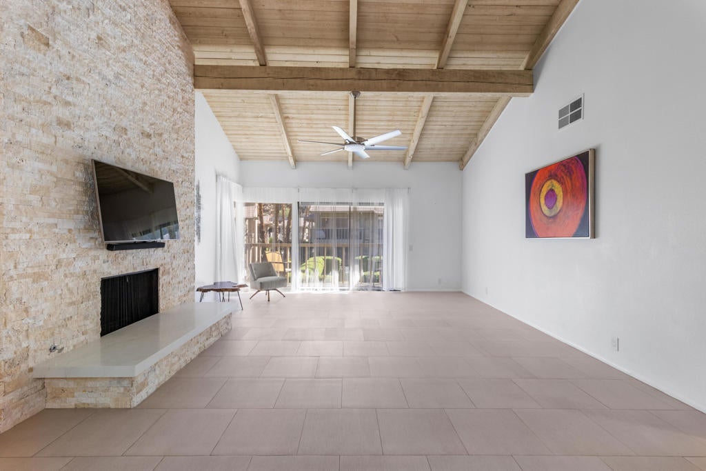 Long-Term or seasonal Lease Opportunity in Mountain Cove, Indian Wells! This remodeled two bedroom, 2 bath unit has vaulted ceilings and beautiful mountain views. The high ceilings and open floorplan create a bright, spacious, and airy living space that welcomes you as soon as you enter the front door. All rooms have balcony access providing ample outdoor space to enjoy the beautiful desert weather. The unit comes with a one car garage with space for storage. The community pool is located steps away from your front door. Tenant pays utilities; landlord covers HOA dues which includes water and trash. Unit is currently unfurnished and can be turnkey furnished for shorter-term/seasonal leases. Available now--don't miss the chance to lease in desirable Indian Wells!