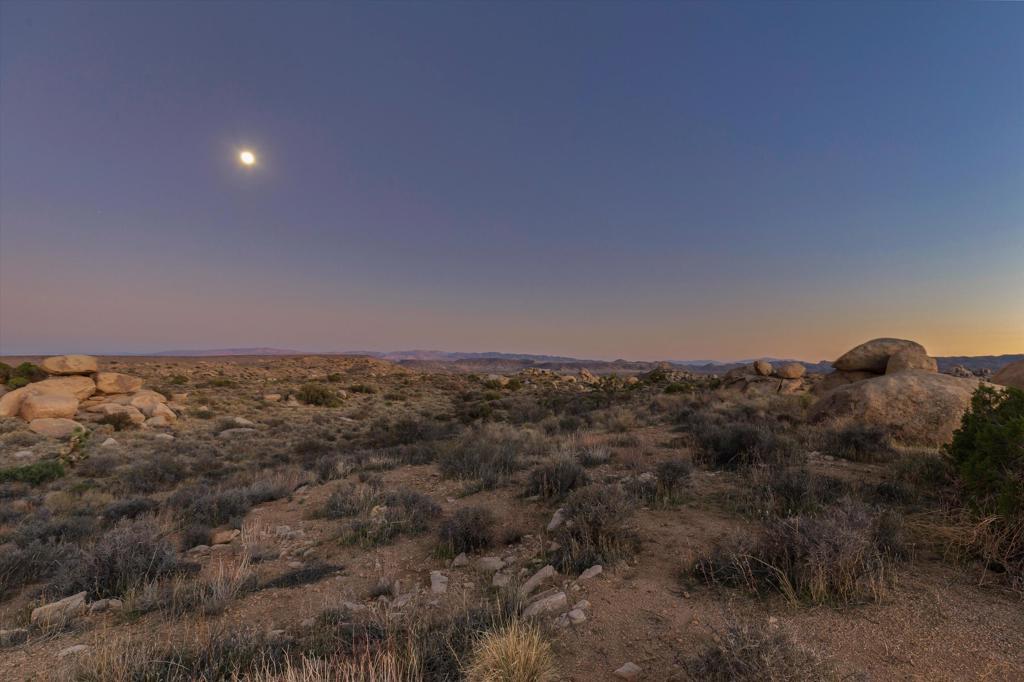 Exceptional five-acre parcel in the most sought-after section of Pipes Canyon, where properties rarely change hands. Set at the end of a quiet road, this elevated site commands sweeping 360 views of San Gorgonio, San Jacinto, and the boulder-strewn expanse and dramatic mesas of Pipes Canyon. Surrounded by vast stretches of protected land, it offers unmatched privacy, striking topography, and sculptural boulders that define the High Desert's raw beauty. Secluded enough to feel worlds away yet close to acclaimed local landmarks including La Copine, Pappy + Harriet's, the Integratron, Joshua Tree National Park, Sand to Snow National Monument, and Pioneertown Preserve. A rare opportunity for those who understand that in the High Desert, location is everything, and this micro pocket of Pipes Canyon is among the most coveted. With notable new architectural projects quietly taking shape nearby, this parcel lies at the heart of what's fast becoming one of the desert's most compelling creative enclaves.