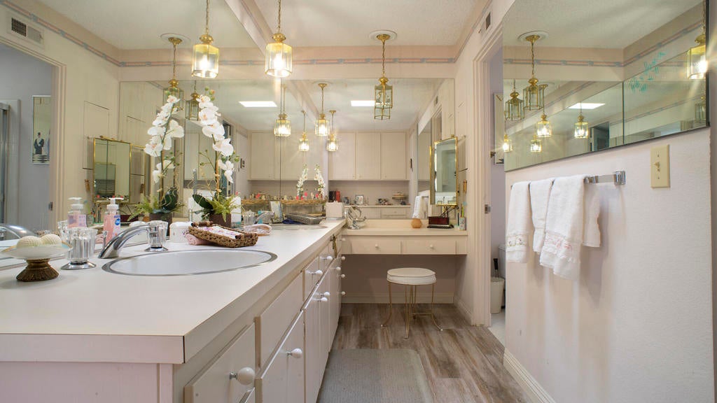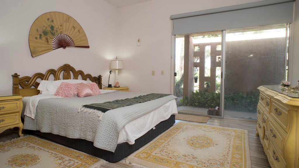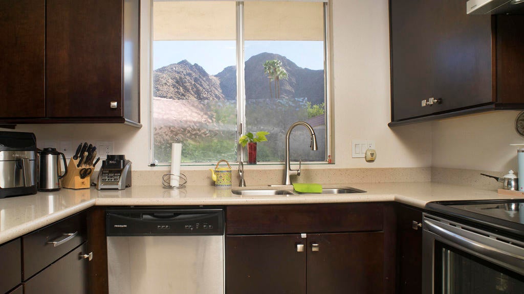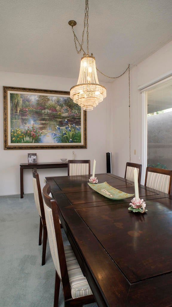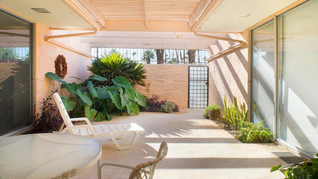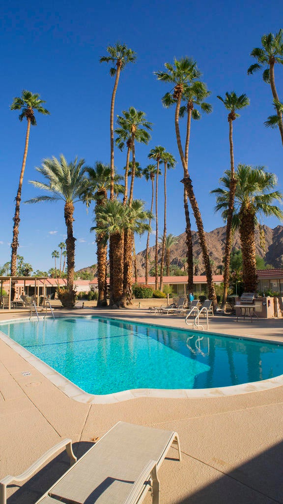 PRICE REDUCTION! First time on the market! Wonderful and spacious, 3 bedroom, 3 bath Sandpiper condo in prestigious Indian Wells Country Club. Open and bright Mid-century floor plan with gorgeous south mountain views from the kitchen and great room! Back patio overlooks the beautifully landscaped grounds and community pool. Kitchen was updated with new cabinets. Wood-like tile floors. Main bedroom has access to a private courtyard patio, en-suite bathroom with dual sinks, shower and walk-in closet. Second bedroom has access to the private courtyard patio, includes an en-suite bathroom and walk-in closet. Third bedroom has access to the back patio, and walk-in closet, third bathroom with sink, shower. Inside laundry room. Some of the original light fixtures are still hanging. Center courtyard is very private. Two car detached garage. Close to El Paseo shopping, fine dining, McCallum Theatre, golf and the world-renowned Indian Wells Tennis Garden, an ideal location!