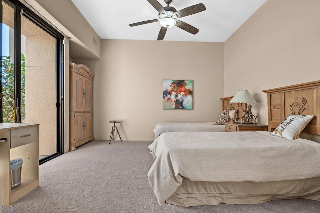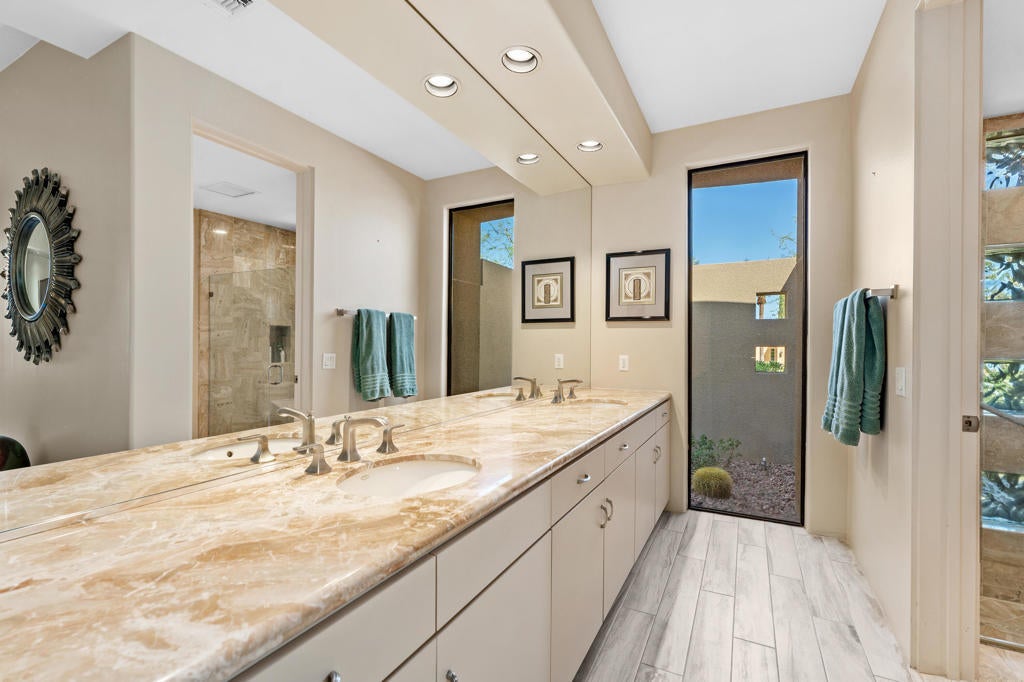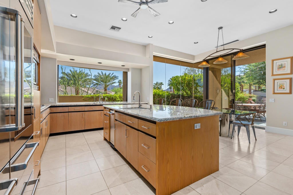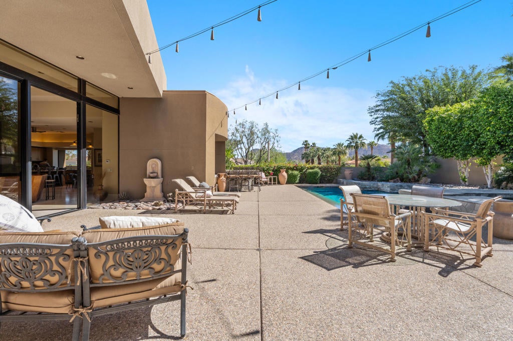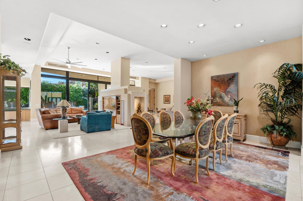 Discover the perfect blend of contemporary design, privacy, and luxury at this distinctive custom home in The Highlands--one of the most coveted enclaves within Ironwood Country Club. With over 4,450 square feet of refined living space on a premium elevated half-acre lot, this residence captures beautiful mountain views while offering an effortless indoor-outdoor lifestyle. Thoughtfully designed for both comfort and style, the home features three bedrooms plus a den and four-and-a-half baths, including two spacious primary suites. Walls of glass and high ceilings flood the interiors with natural light, highlighting the home's architectural sophistication. The expansive great room features a step-down wet bar, limestone flooring, and a sleek fireplace--perfect for entertaining. A gourmet kitchen with white oak cabinetry, granite countertops, a large island, and professional-grade Sub-Zero, Bosch, and KitchenAid appliances will delight any chef. Both primary suites are true retreats, each with seamless corner windows framing dramatic views, luxurious baths with bidet toilets, and generous walk-in closets. One suite features a fireplace, a spa-style tub, marble shower & countertops, and dual vanities, while the other offers its own private sanctuary. Outdoors, you'll find spaces designed for relaxation and entertaining--from the gated entry courtyard to the landscaped backyard with artificial turf, built-in BBQ, and Pebble Tec pool and spa framed by stacked stone. The three-car garage with epoxy flooring, owned 60-panel solar system with batteries that power the home for 24 hours, four HVAC zones, and two new water heaters reflect the home's thoughtful attention to comfort and efficiency. Located in the prestigious Ironwood Country Club--one of Palm Desert's premier private communities--residents enjoy access to two championship golf courses, world-class tennis and pickleball facilities, a state-of-the-art fitness and wellness center, and both fine and casual dining options. An active social calendar and stunning desert setting make Ironwood an exceptional place to call home. This extraordinary residence embodies desert contemporary living at its finest--private, refined, and perfectly positioned for those who value design, quality, and serenity.