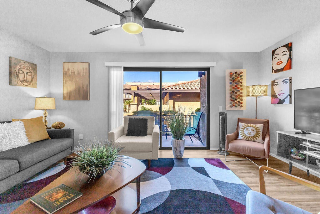 Welcome to Cathedral Springs, a gated community offering resort-style living in the heart of Cathedral City! This beautifully updated 2-bedroom, 2-bath condo offers 1,160 sq. ft. and features modern flooring, stylishly upgraded bathrooms, and refreshed countertops throughout. Enjoy a spacious layout with a dedicated laundry room and two private patios, one off the primary suite and another off the living room with stunning mountain views. The HVAC and water heater were both replaced in 2019 for added peace of mind. Perfectly located near the pool and fitness center. Just minutes from shopping, dining, and downtown Palm Springs, this is desert living at its best!