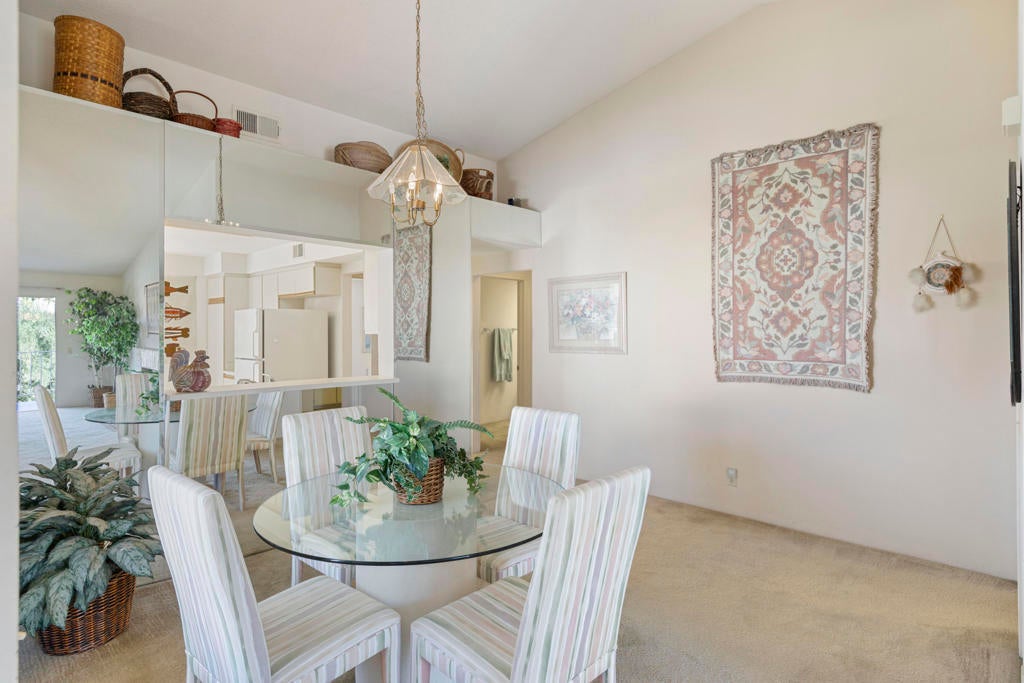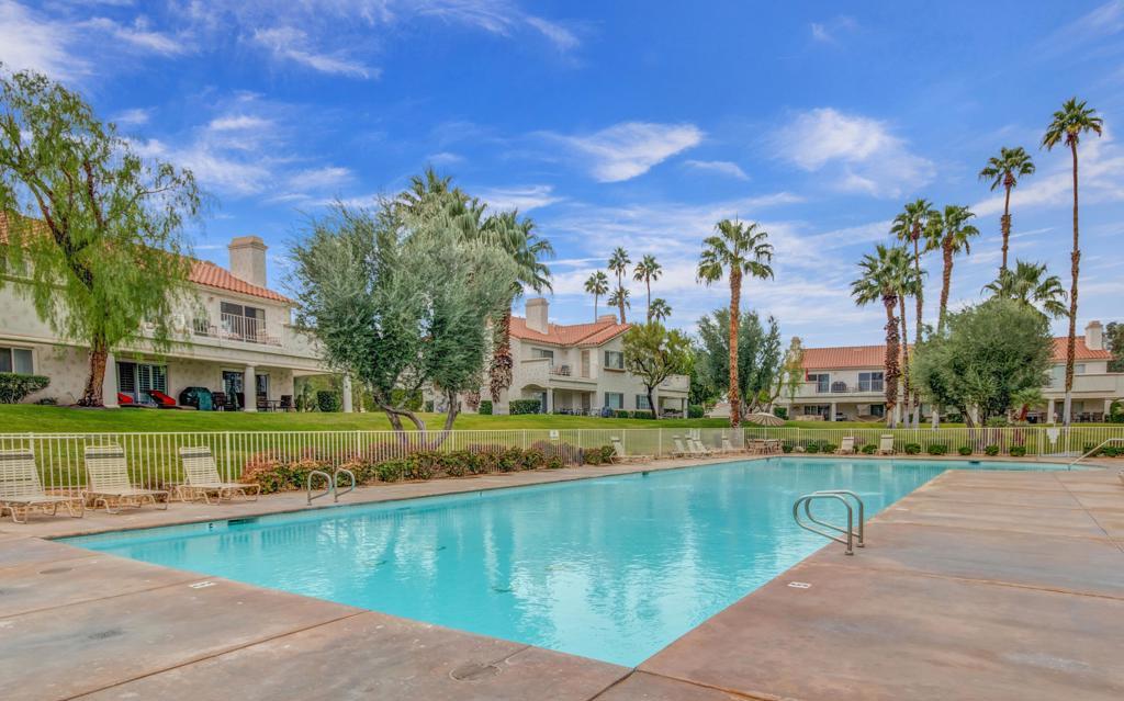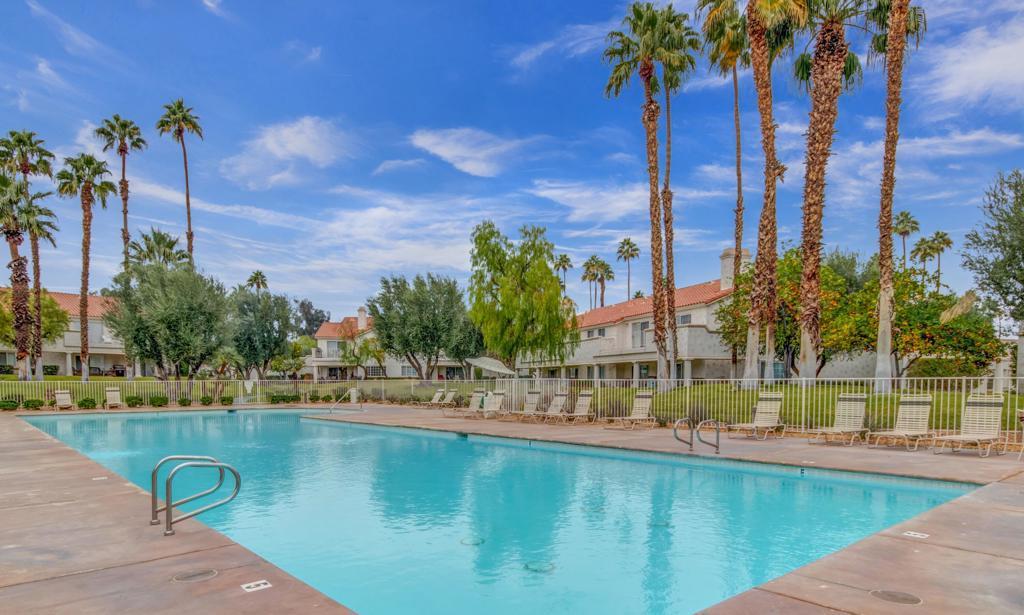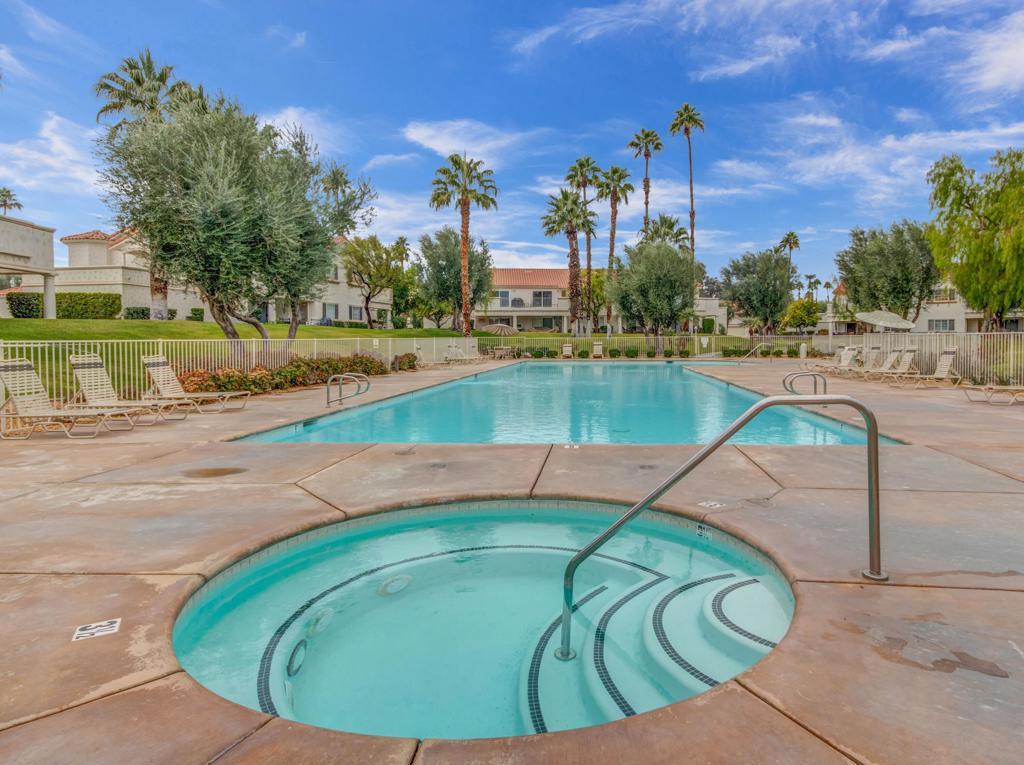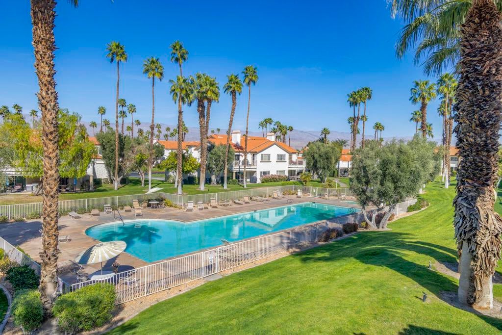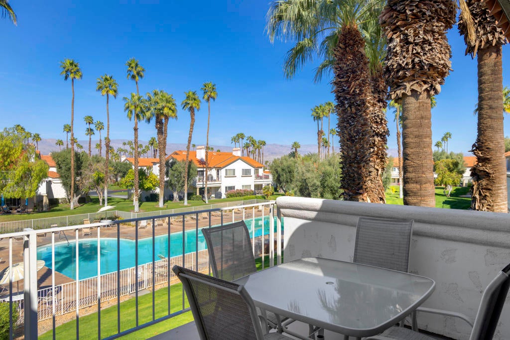 Fantastic location and just steps away to our Jr. Olympic Pool. This 2 bedroom, 2 bath original condition is perfect for your own personal touch. This Upper level, end unit, looking onto the Jr. Olympic Pool is a fantastic location. Nice and bright with an open concept with bedrooms on opposite ends for privacy. Within walking distance to restaurants and shopping and only a few miles to all the top entertainment venues. Acrisure Arena, Agua Caliente Spa & Casino, the McCallum Theatre and El Paseo: a 2-mile boulevard of upscale Galleries, Boutiques, and fine Dining Restaurants are all within just a few minutes' drive. HOA Dues include Cable, WI-FI, building and grounds maintenance, Tennis, Pickleball, Fitness Center, and 32 Pools & Spas. Memberships available but not required for our Championship Scottish Links Golf Course. Call Today to schedule your private tour.