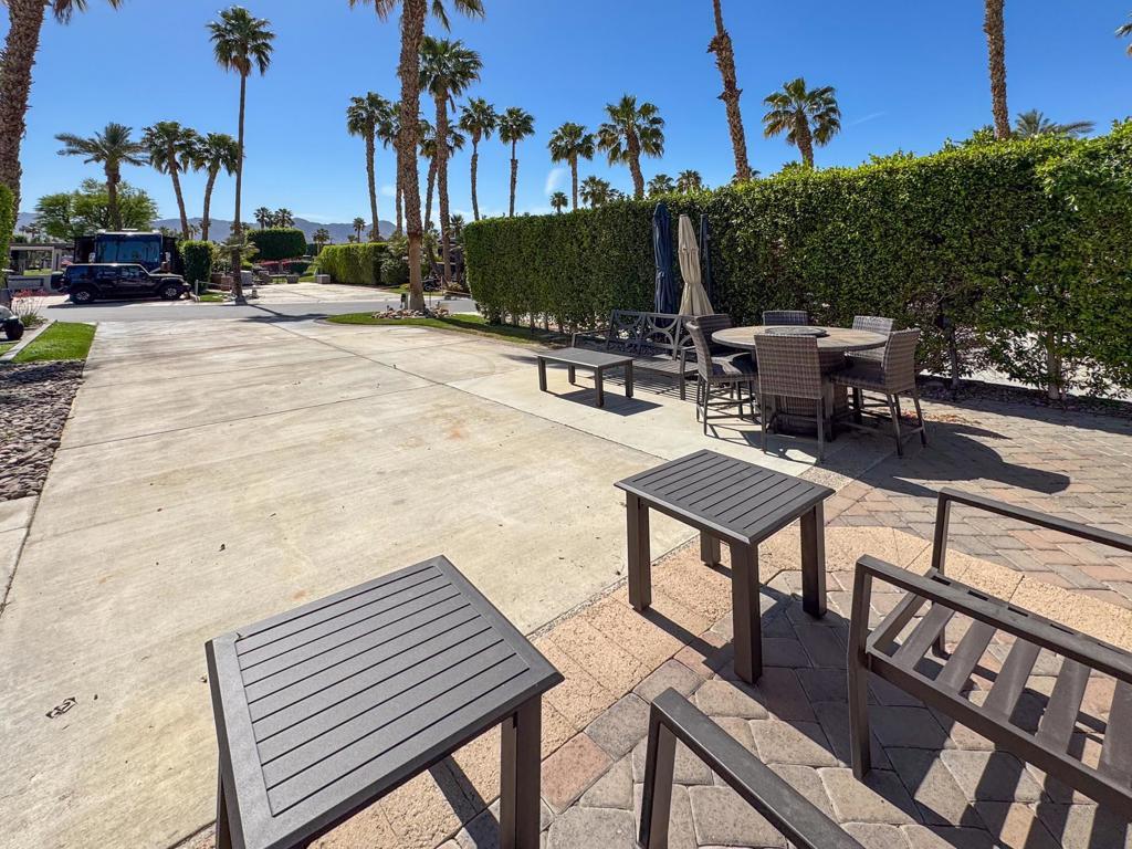 This beautiful luxury RV lot at Outdoor Resort Indio offers the perfect blend of comfort, privacy, and resort-style living. Located near the clubhouse yet tucked away against the resort entrance wall, the lot features a raised rear patio with pavers--ideal for entertaining or relaxing outdoors. Landscaping with extra palm trees and privacy hedges on both sides creates a serene, secluded atmosphere. Enjoy meals under the desert sky at a table with six chairs and two umbrellas, or fire up the BBQ for a perfect evening. The lot includes two convenient storage boxes, additional outdoor furniture, and a grassy pet area, making it both pet-friendly and practical. Whether you're looking for a personal retreat or an upscale home base for your RV lifestyle, this lot is a true gem.‍Outdoor Resort Indio is a Class A only RV park.