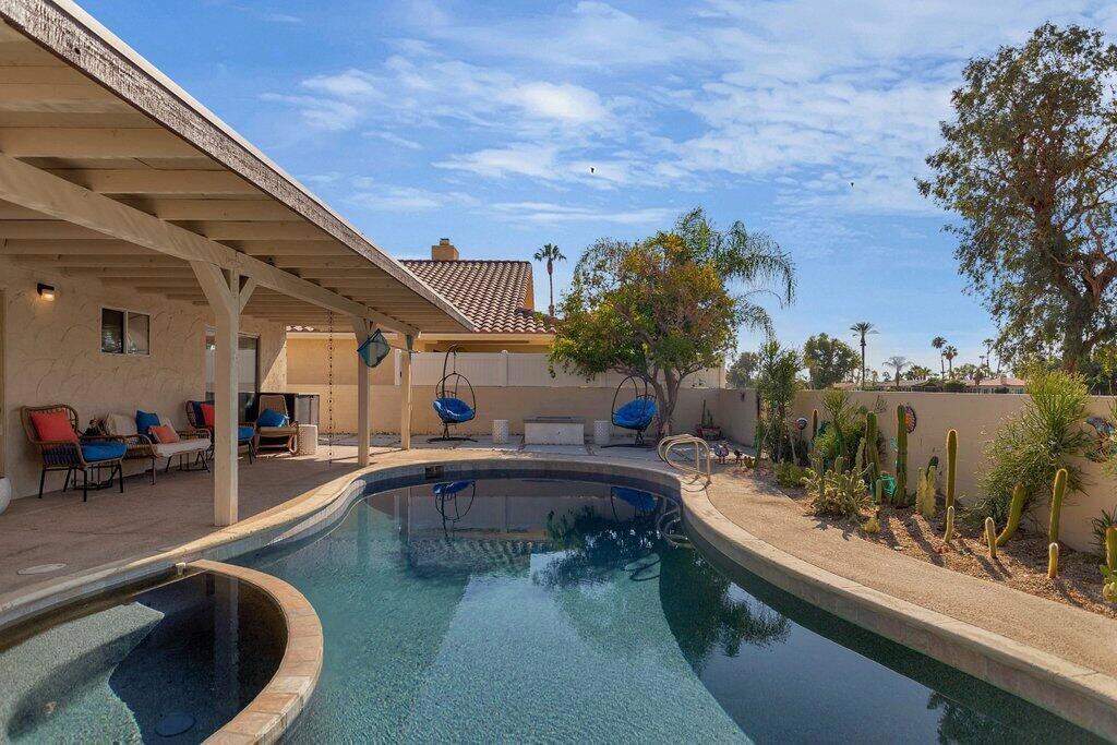 Seasonal Rental WITH a pool in the heart of Palm Desert. This 3 bedroom, 2 bathroom home is a relaxing desert retreat. Enjoy Southern views while sitting by the pool or have a cocktail next to the firepit. Located minutes from the famous Indian Wells Tennis Gardens, Shopping, Golfing and El Paseo. This is the perfect retreat to relax and play.