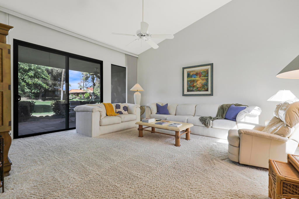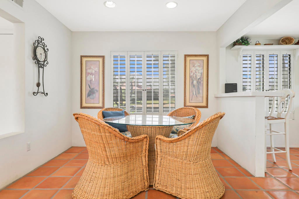 Experience both timeless elegance and modern amenities in this meticulously maintained, fully furnished home. Rustic Spanish tile floors combine with vaulted ceilings and a comfortable, carpeted living room to create a welcoming atmosphere. The kitchen is updated with new appliances and accented by sleek white tile countertops. Dual pane windows boost energy efficiency while offering picturesque views throughout the year. Each bathroom is fitted with contemporary showers, including a double vanity in the primary suite for added luxury. The residence is completely handicapped accessible, with cozy carpeting in each bedroom for warmth. Plantation shutters on the west side frame breathtaking views of the golf course and mountains, ideal for relaxing evenings. A newer HVAC system and water heater provide additional peace of mind.Sunrise Country Club offers secure, guard-gated living with 746 residential condos, an 18-hole Par 64 golf course, nine championship tennis courts, ten pickleball courts, twenty-one pools and spas, plus a clubhouse featuring a dining room, lounge, grille, pro shops, and a fitness/activity center. Two new bocce ball courts add to the recreational options. Located in Rancho Mirage--the heart of the desert--the community is close to top shopping, entertainment, and health facilities. Palm Springs International Airport is only 20 minutes away.