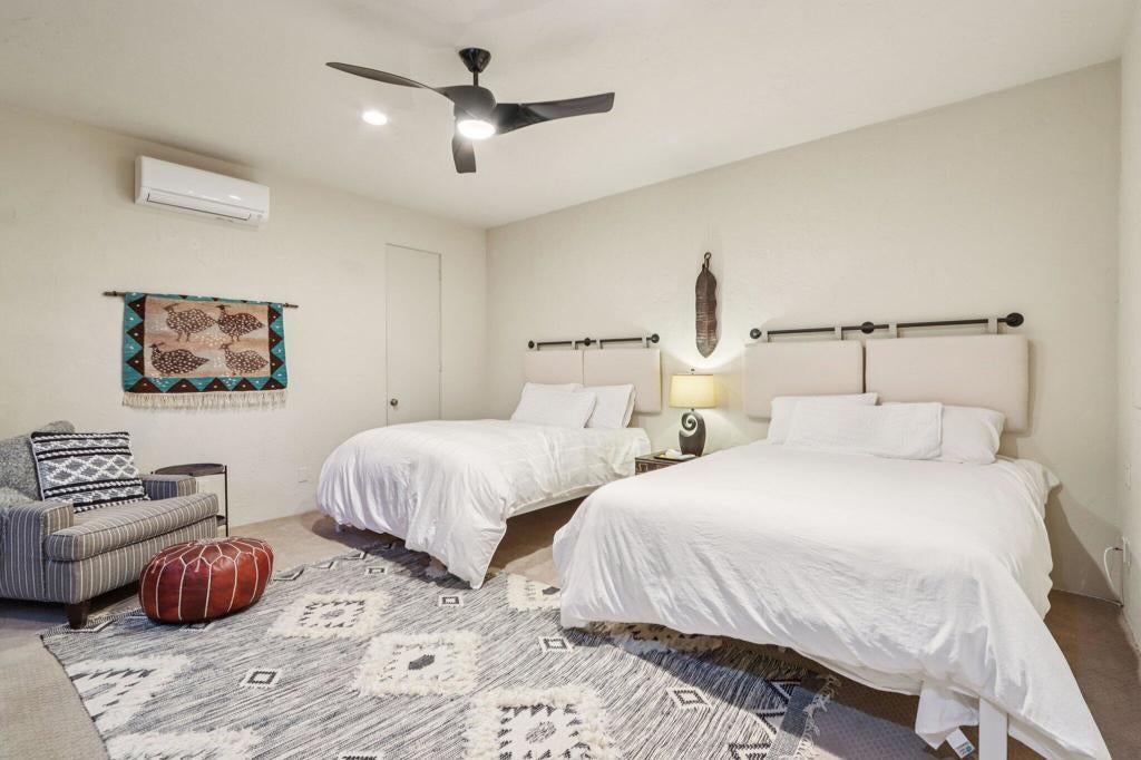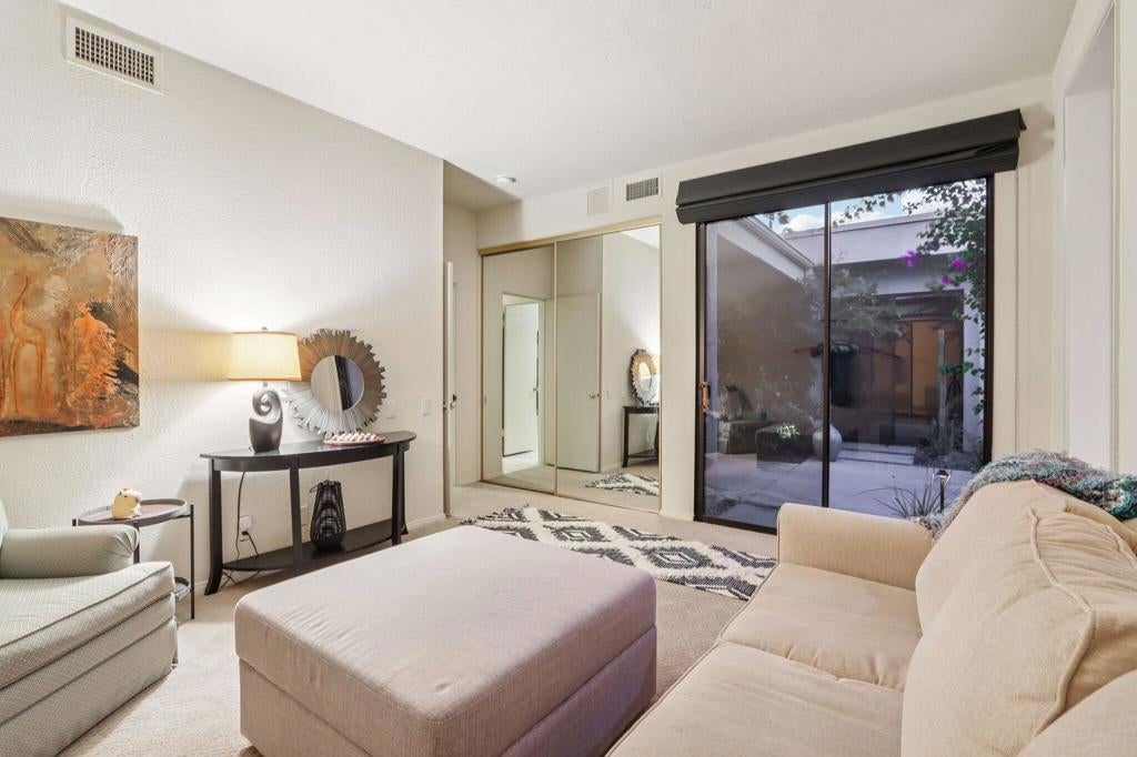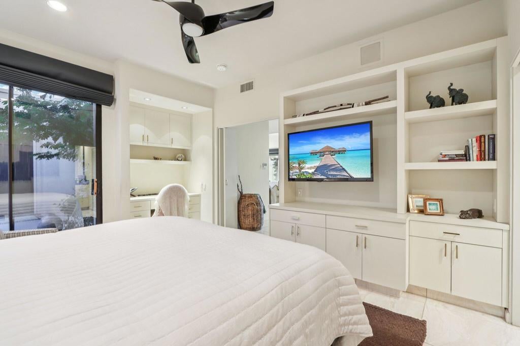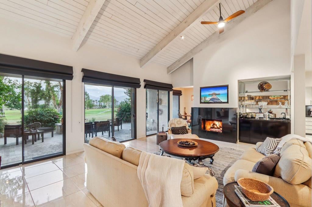 Mission Hills Country Club - Fully Furnished Seasonal Rental with Mountain & Fairway Views Escape to the desert and enjoy luxury resort living at Mission Hills Country Club. This fully furnished home blends comfort and style, offering south-facing mountain and fairway views on the iconic Dinah Shore Tournament Course. Step through a private gated courtyard into a spacious open-concept layout perfect for relaxing or entertaining. The dramatic great room with wood-beamed ceilings, granite fireplace, and wet bar flows seamlessly to the large back patio. The updated kitchen with granite countertops and modern appliances opens to an indoor and outdoor dining area, providing ample space for your culinary experiences. With 4 bedrooms plus a pull-out sofa bed, this home easily accommodates family and friends. The primary suite is a true retreat with spa-style bath, while the additional bedrooms (each with its own bath) offer comfort and privacy. A flexible den/office/media room adds extra space for work, play or sleep. Spend sunny afternoons on the expansive terrace with a built-in BBQ island and firepit, and enjoy breathtaking views of the San Jacinto mountains with glorious sunsets. Within walking distance, you'll enjoy multiple pools and hot tubs, making every day feel like a vacation. Solar powered and energy-efficient to ensure convenience and peace of mind. Move-In-Ready -- just bring your suitcase and start enjoying the luxe desert lifestyle!Ask us about cart rental recommendations, and we can put you in touch with the Mission Hills contacts for a trial golf membership.