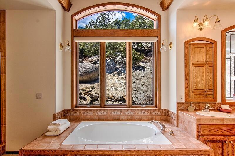 Grandeur! Isolated on 3 parcels, over 9 acres, the stately 3 stories, built in harmony with its surroundings, seems held in place by the giant granite boulders surrounding it. Handcrafted with attention to artistry and quality materials. Ascend 3 floors by Elevator and step into the elegant Great Room, illuminated by a wall of windows postured for breathtaking views of Tahquitz Peak. The Kitchen is a gourmands delight. Spacious wrap-around Decks take it all in. Luxurious Master Ensuite. Two Staterooms on the 2nd floor. Soaring eagles, screeching hawks, four legged wildlife abounds. Come, take a breath. Live beyond your dreams.