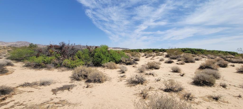 Rare 10 acres with beautiful mesquite fauna, graded pad and power! This hidden pocket neighborhood of East Desert Heights is adorned with small dunes and large green mesquite bushes. Ideal for a designer compound. This private setting is the perfect hideaway. Yet less than 10 minutes to restaurants and a convenience store. More celebrities, artists and musicians are calling 29 Palms home than ever before. Close to the Marine Base and more amenities in downtown 29 Palms. Starry nights. Horse property. Amazing sunsets where the mountains to the east often glow red in the last light of the day. Just 21 miles to the Joshua Tree National Monument's 29 Palms gate. Almost 3 million tourists visited the park annually. Hot vacation rental area. Short drive to the Tortoise Rock Casino, Copper Mtn College, the 29 Palms Theatre, and the ancient oasis of Mara. Picturesque mountain landscapes of the Bullion Mtns, the Sheephole Mtns, the Little San Bernardino Mtns, and snow caps on Mt San Gorgonio. 54 miles to Palm Springs. 147 miles to downtown Los Angeles. For all questions on building and usage call the city planning dept. For all questions on utilities, call the appropriate utilities agencies. Don't Wait - Call Now!! APN: 0634-051-08-0000 Address is assigned.