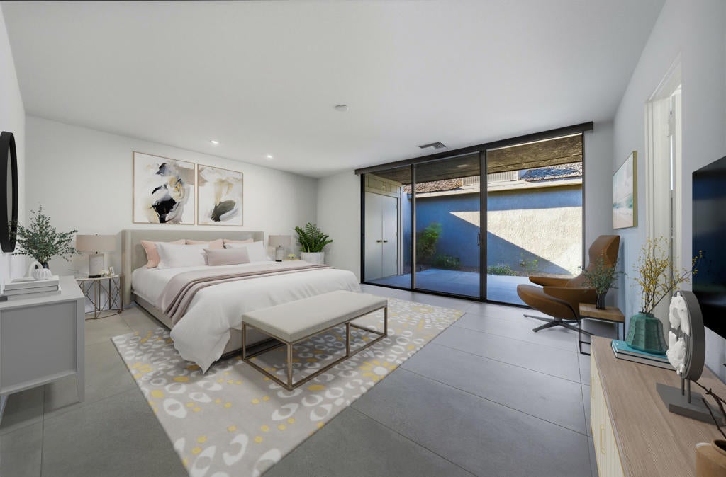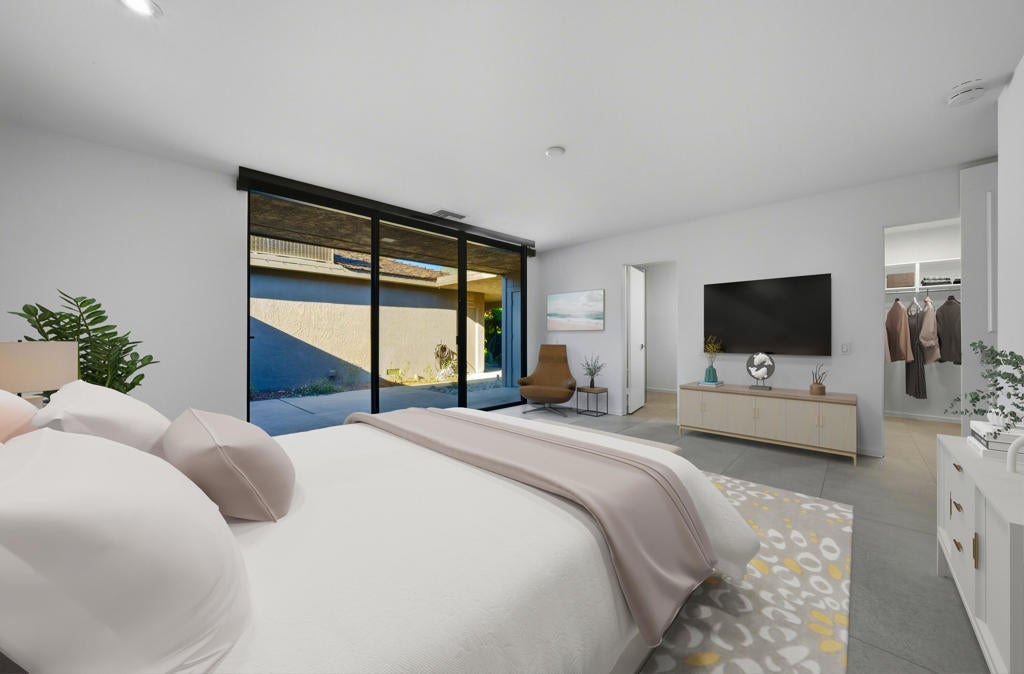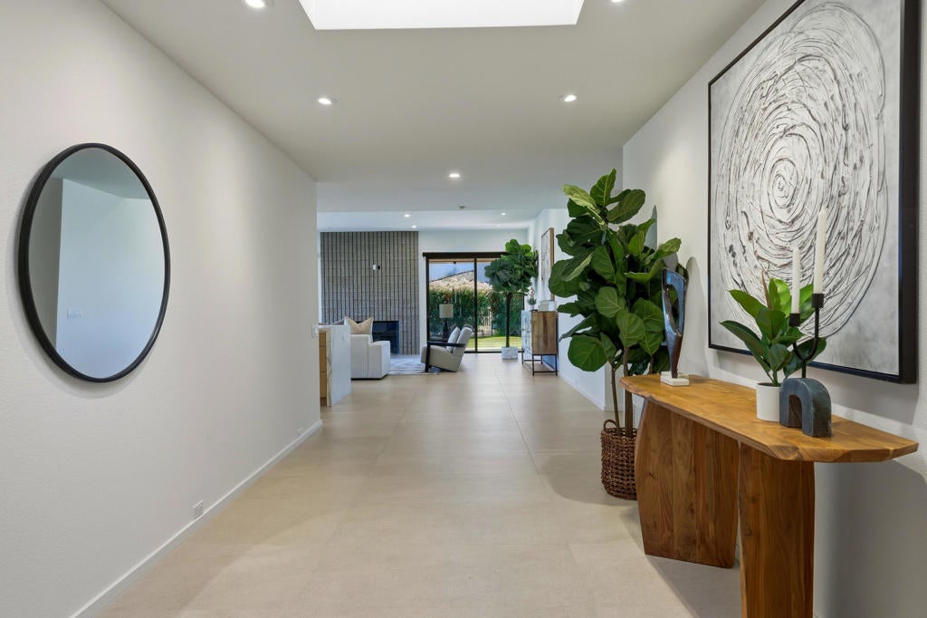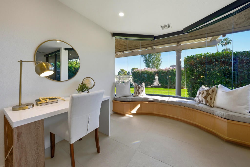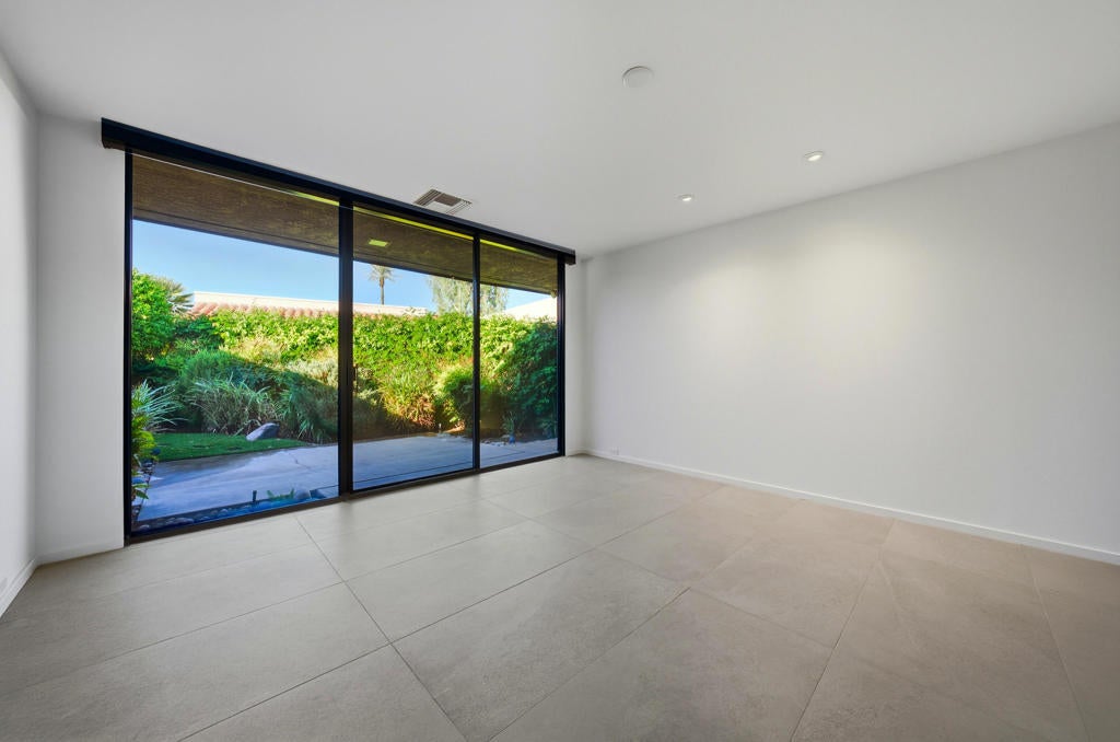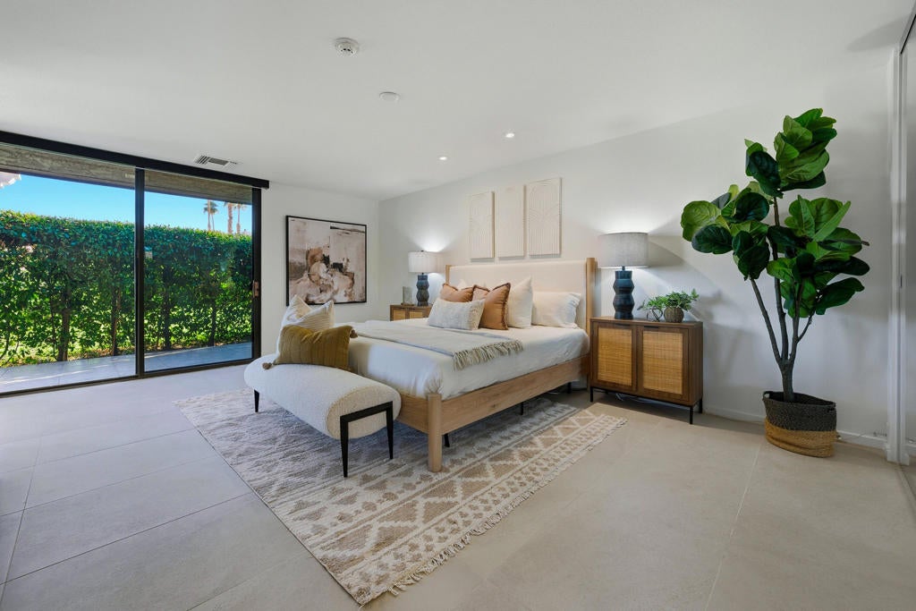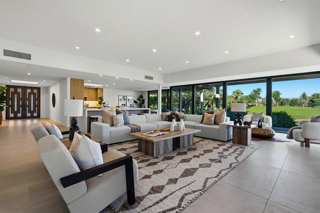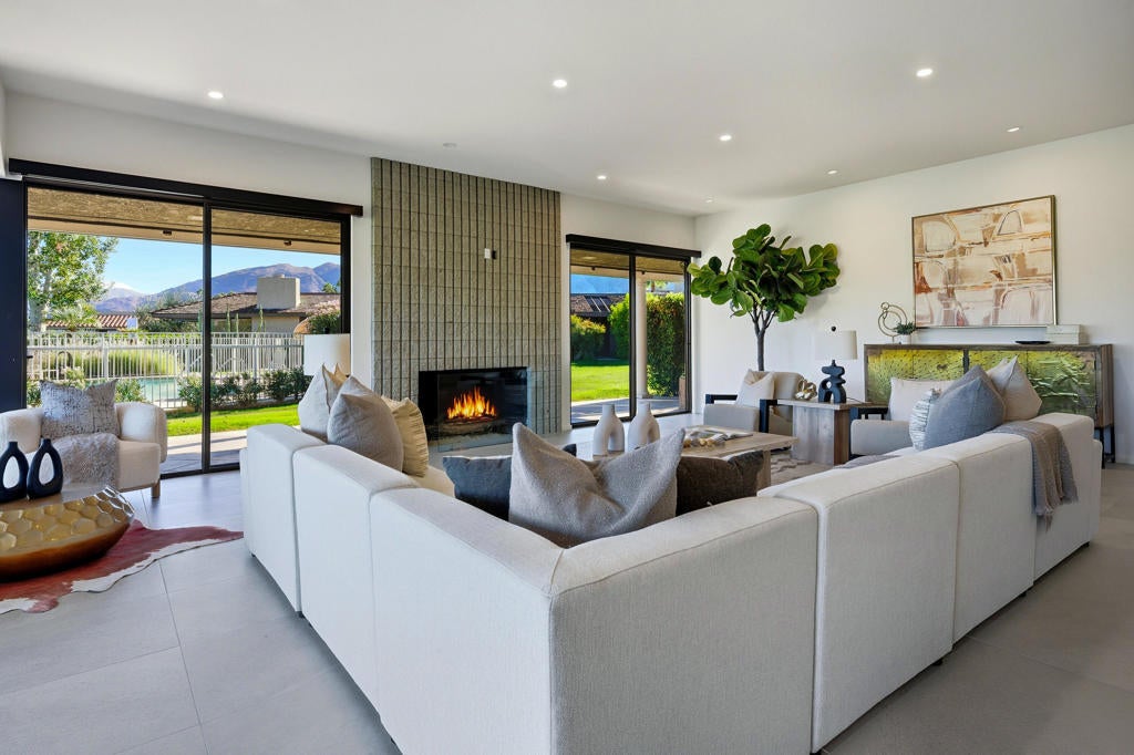 Experience elevated desert living in this stunning 3-bedroom, 3-bathroom, lakefront residence showcasing panoramic south and southwest views across the 1st and 2nd double fairways. Thoughtfully expanded and extensively remodeled in August 2025. The Shaughnessy floor plan has been transformed into a modern masterpiece where sophisticated design meets effortless indoor-outdoor living. A wall of glass wraps the morning room, kitchen, and living area, framing serene water and golf course vistas while flooding the home with natural light. The open-concept living space features 24''x48'' porcelain tile flooring throughout, a striking split-face concrete slab fireplace, and seamless transitions to the expansive outdoor patio--ideal for relaxing or entertaining against a breathtaking backdrop. The chef's kitchen is a true showpiece, boasting waterfall quartz countertops, custom soft-close cabinetry, and top-of-the-line KitchenAid appliances. Every detail was curated with luxury and functionality in mind, offering both a refined aesthetic and exceptional performance. Automatic Blinds are installed throughout the home. Each of the three spacious bedrooms offers comfort and privacy, with beautifully updated en-suite baths showcasing designer finishes and modern fixtures. The primary suite captures tranquil lake views and exudes understated elegance, while guest suites provide the perfect retreat for family and friends. Additional upgrades include two newer HVAC systems (installed 2 years ago), all-new ductwork, and a four-foot expansion off the living room, enhancing both comfort and livability. Perfectly positioned to capture morning light and glowing sunset skies, this home offers the best of golf course and waterfront living in one exquisite setting. Every inch reflects thoughtful craftsmanship and contemporary luxury--making this residence truly one of a kind. The Springs, it's where you belong!