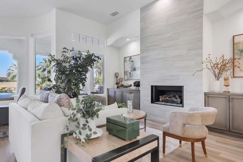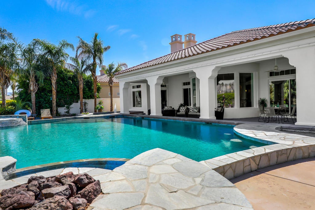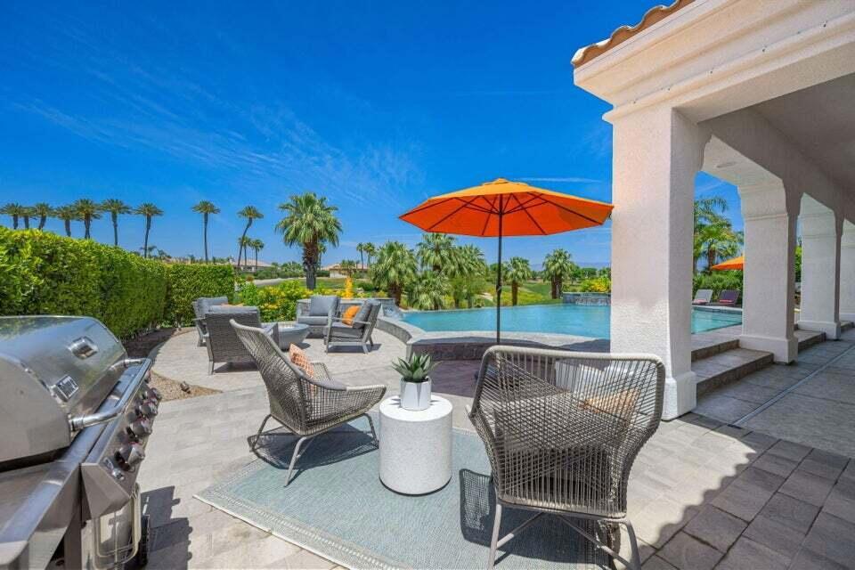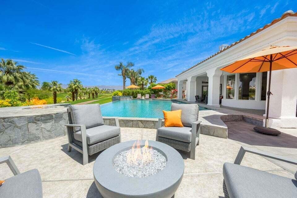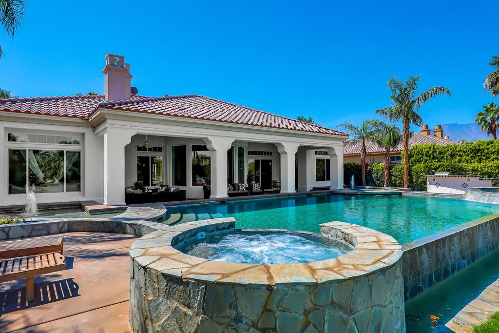 Arroyo and green belt views plus panoramic mountain views on the left across two fairways and a lake. Outdoor living at its finest with a spectacular infinity pool plus adjacent wading pools with fountains, two stacked rock spills - one from the spa; the other from the firepit. And there's an outdoor kitchen and a sprawling sundeck.The courtyard entry leads you into a soaring 18', skylit rotunda foyer that opens up to BIG -- a big 43' Great Room, a big 17' Office/Den, a big 18' Family Room; a big 35' Master Suite -- over 4400 sf. of spacious luxury. Guests?...a courtyard casita plus two guest rooms with their own sitting room 9or family room). The Great Room with its bow-window dining room captures the view and is perfect for entertaining. The feature list is endless - dramatic 12' soffited ceilings, 8' doors, gourmet kitchen, Jacuzzi tub and separate shower in master bath, recirculating hot water, switch-start fireplace, etc.