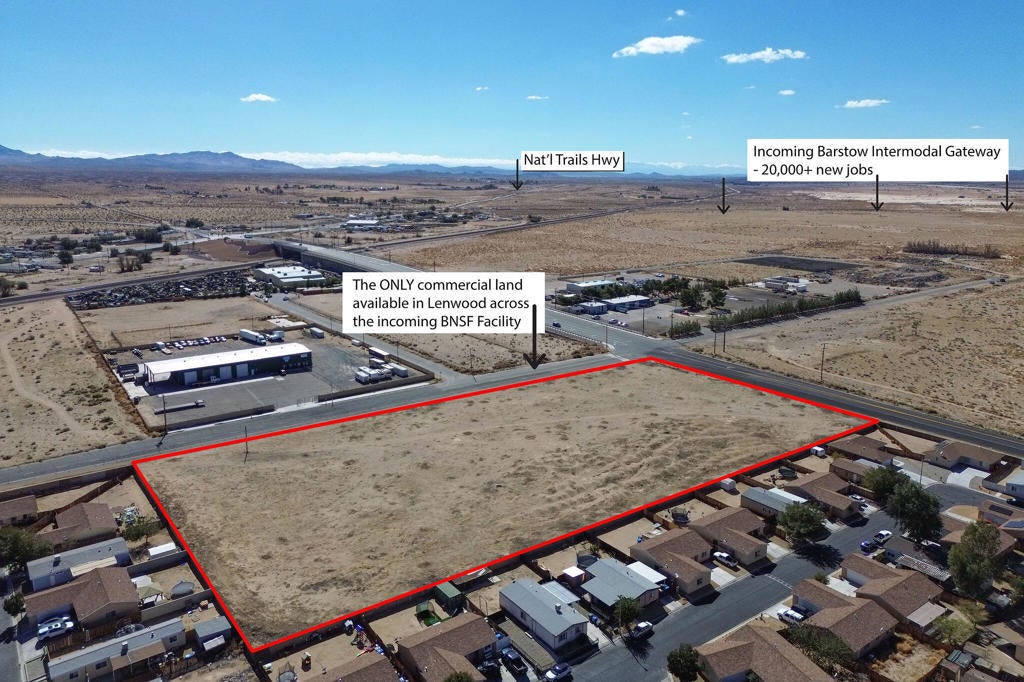 AMAZING Commercial Opportunity in the Path of Growth!Ready for development 5-acre corner parcel sits at a HIGH-VISIBILITY INTERSECTION in the Lenwood area of Barstow--positioned perfectly for future development. Zoned CN (Commercial Neighborhood), this property allows for a wide range of uses that serve the local community, including retail centers, restaurants, medical or dental offices, daycare or educational facilities, fitness or wellness centers, and professional offices.The site is the only commercially zoned land available in Lenwood, making it a truly rare opportunity. All utilities are available, including sewer, offering a streamlined path for development. Located DIRECTLY ACROSS from the NEW BNSF Barstow International Gateway (BIG)--a transformative $1.5 BILLION PROJECT expected to GENERATE OVER 20,000 NEW JOBS--this parcel is ideally situated to benefit from the massive economic expansion and workforce growth that will follow.With EXCELLENT EXPOSURE, FLEXIBLE ZONING, and PROXIMITY TO one of California's most SIGNIFICANT LOGISTIC DEVELOPMENTS, this property is perfect for developers, investors, or owner-users looking to capitalize on Barstow's next wave of growth.