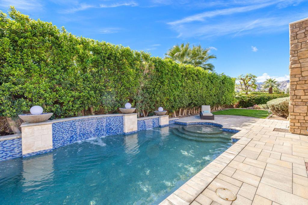Welcome to 17 Emerald Court - A Desert Oasis inside an upscale gated community!Privately situated on a quiet cul-de-sac in the prestigious Revelle at Clancy Lane, this impeccably maintained 3-bedroom, 4-bathroom home offers 4,088 square feet of sophisticated living space. With timeless architectural elegance and thoughtfully curated upgrades, this home is truly one-of-a-kind.From the moment you arrive, you'll be captivated by its charming curb appeal, manicured landscaping, and grand, inviting entryway.Inside, soaring ceilings and expansive windows bathe the open-concept layout in natural light, creating an airy and welcoming atmosphere. The gourmet kitchen is a chef's dream, featuring embossed leathered quartz countertops, premium WOLF and Sub-Zero appliances, and a stunning 13-foot island--perfect for everyday meals or entertaining on a grand scale.The generous living and dining spaces flow seamlessly into a media/billiard room with a built-in bar, offering the ultimate setting for hosting friends or relaxing with family. Two fireplaces grace the inside of the home, and there are two fire pits outside as well.Open the stacking sliders to your private resort-style backyard, complete with a saltwater pool and spa, a covered patio, mature landscaping, and breathtaking mountain views--an entertainer's dream and a peaceful retreat all in one.The luxurious primary suite serves as a true sanctuary, with two spacious walk-in closets and a spa-inspired ensuite bath. Each of the additional bedrooms also features its own ensuite bathroom and walk-in closet, offering comfort and privacy for guests or family. All bedrooms have motorized shades for privacy. Energy efficiency meets luxury with owned solar panels, keeping utility costs low year-round.Ideally located near the best shopping, dining, golf, and entertainment the desert has to offer, 17 Emerald Court is the perfect balance of seclusion and convenience.This home truly has the WOW factor.Furniture is available for purchase.Don't miss your chance--schedule your private showing today!
