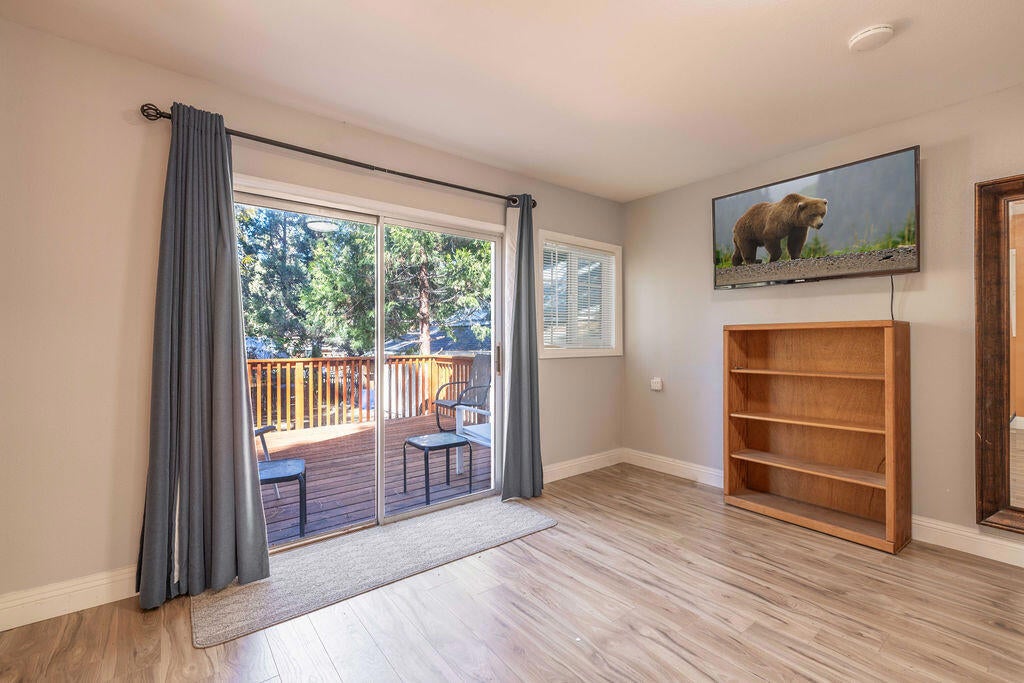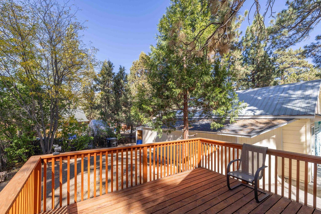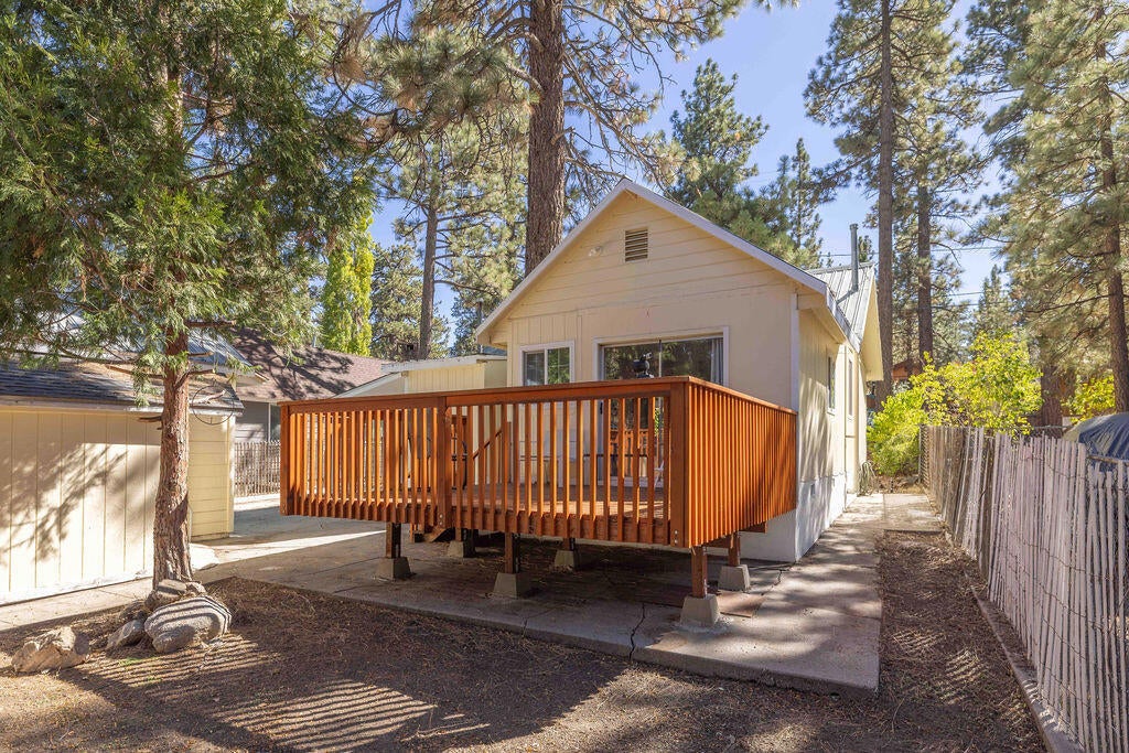 This newly renovated home is move in ready and offers a low-maintenance lifestyle in a desirable location. The 705 sq ft interior features two bedrooms, one is a primary with the full bathroom attached and a second bedroom with 1/2 bath. This cozy home is where you want to spend your time here in Big Bear. Washer and dryer room is just off the kitchen and has room to work. The property offers a fenced yard and a spacious deck, and spacious for outdoor relaxation, BBQ and/or entertaining guests. The 5000 sq ft lot is fully fenced so if you have any fur babies or little ones that need to stay protected in the yard, with lots of space to run around, play games, plant a garden or whatever you would like, this one is for you. A One car garage is at the back of the property with a storage area included in it. Room to store your toys during the off season. Close to Community market, and resteraunts and a few shops that you might want to look into. This home would make a wonderful starter home, or a great weekend retreat from the hussel and bussel of city life, or an investment. Come take a look and see for yourself. Make this one yours before someone else does!