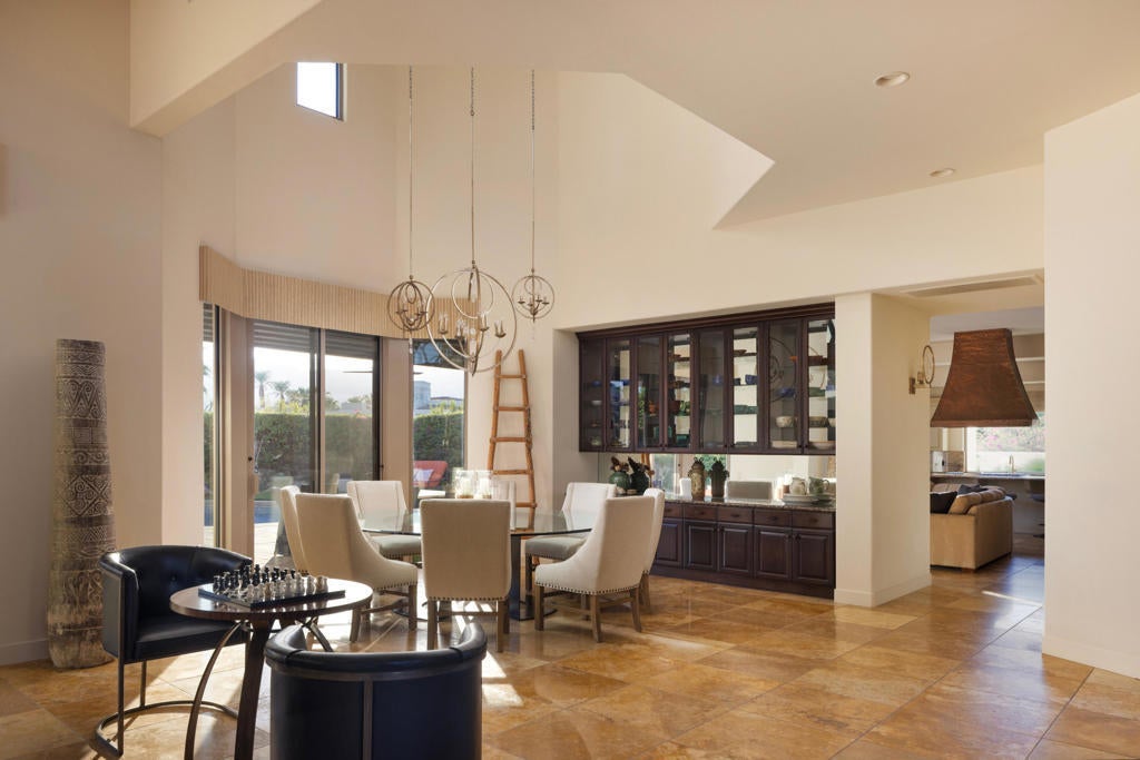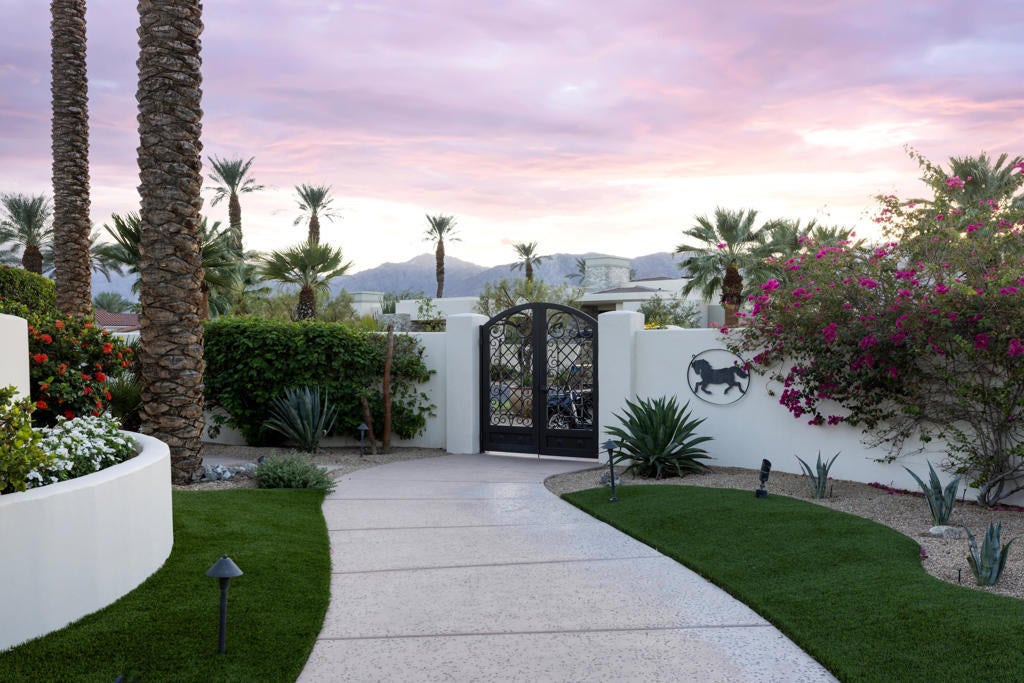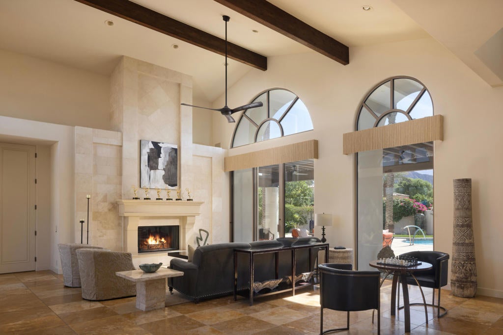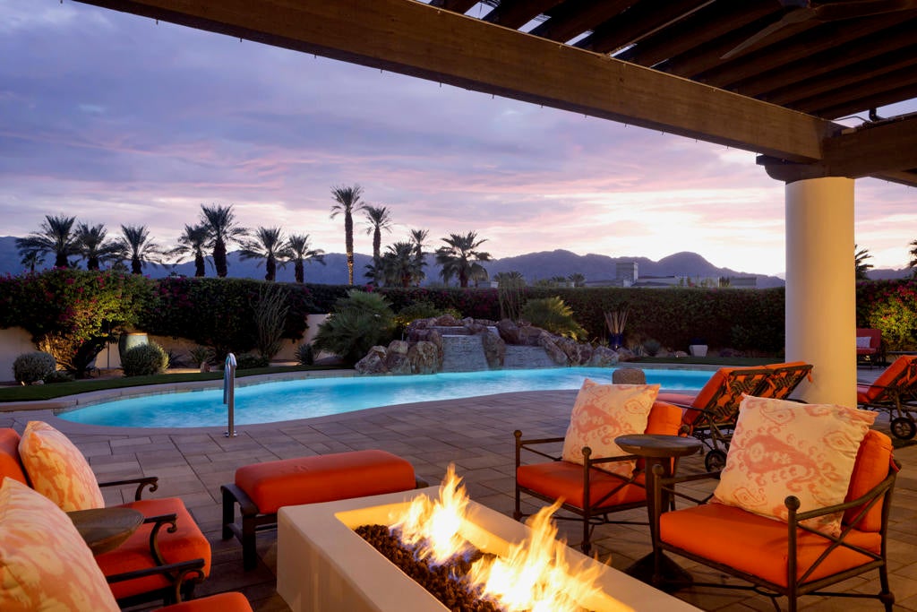 This spectacular Montecito-style estate sits on nearly a full acre in the heart of La Quinta, at The Estancias, a private gated enclave of only 49 custom estates. Offering 6,061 square feet of living space and nearly 360 degree mountain views, this home is designed for those who value privacy, scale, views and seamless indoor-outdoor living.The residence includes 4 ensuite bedrooms, 7 bathrooms, and a spacious guest casita with private living quarters which are enhanced by five independently controlled temperature zones for optimal comfort and efficiency.At the heart of the home is a chef's kitchen, anchored by a dramatic copper hood over a 48-inch gas cooktop. Outfitted with double ovens, dual dishwashers, twin Sub-Zero refrigerators, and walk-in pantry, the kitchen flows into an eat-in dining space and family room with fireplace, creating a warm gathering hub for everyday living or entertaining on a grand scale. The primary suite occupies its own wing, complete with sitting room, double-sided fireplace, and dual spa-style baths, with two large walk-in dressing rooms, double steam shower and jetted tub. Massive windows on both sides of the suite frame mountain views in every direction.Outdoors the estate shines with exceptional amenities, including a resort-size saltwater pool and spa (with solar heating system), firepit, fans and misting system under the loggia. .A circular drive for guests and gated car park, oversized three-car garage with golf cart bay and plentiful storage, plus a deeded Coach parking space with full hookups that doubles as a catering and event staging area. Lush landscaping and layered patios provide countless spots to watch the moon rise over the North Patio stage as the sun sets behind the Santa Rosa Mountains--a setting that is both dramatic and serene.Perfectly situated, the property is steps from world-class golf at Rancho La Quinta Country Club, The La Quinta Country Club, Tradition, Hideaway, Madison, Mountain View, and other premier golf, equestrian and social clubs as well as shopping and dining in Old Town La Quinta. Indulgent escapes await at The La Quinta Resort & Spa, while the Indian Wells Tennis Garden and El Dorado Polo Fields offer world-class events nearby. Private air service, just 15 minutes away, connects desert tranquility with global convenience.This estate combines privacy, sophistication and a true sense of desert living, making it one of La Quinta's most desirable offerings.