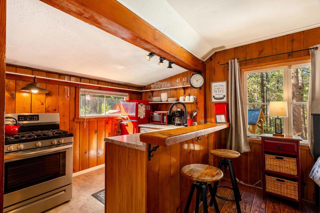REDUCED & PRICED TO SELL! Creekside Hideaway Cabin, Circa 1940 Vintage Charm on Strawberry Creek, Step back in time with this storybook 1940s cabin, brimming with warmth, character, and timeless appeal. Perfectly sited on a large 1/2-acre lot directly along beautiful Strawberry Creek, this fully furnished retreat offers the rare opportunity to experience true creekside living in the heart of Idyllwild. Relax on your private deck and listen to the soothing sounds of nature, or follow the gentle creekside path into town, just a short stroll away-to explore Idyllwild's charming art galleries, boutique shops, wine bars, and eateries. After a day of adventure, return to your cozy hideaway where rich wood flooring and a propane wood-burning fireplace invite quiet evenings and heartfelt conversations. The open, light-filled kitchen features bar seating and a delightful vintage red refrigerator, adding a touch of retro flair. Outdoors, unwind in the bubbling spa under the stars and take in the peaceful magic of this idyllic setting. Small in size but big on style and sophistication, this lovingly cared-for cottage is truly one of a kind. Amazing location!