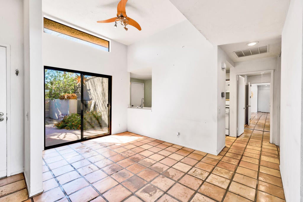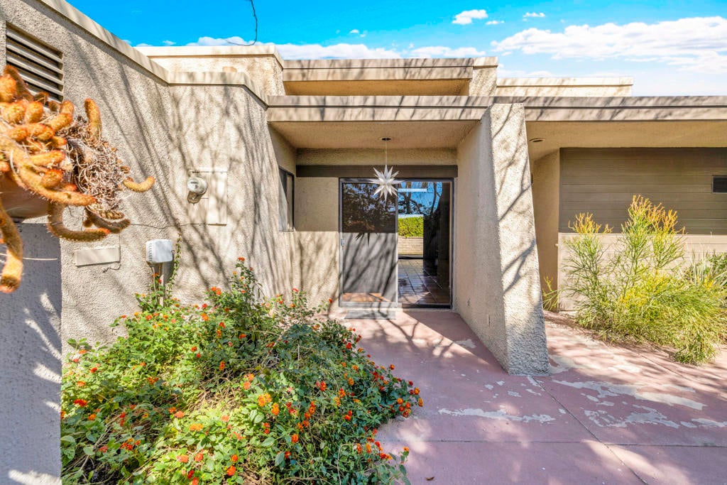 TRUST SALE! No court approvals needed. Centrally located in the heart of Palm Springs, The Rose Garden is defined by mid-century modern architecture in a resort-style setting. Designed by world renowned mid-century architect, Donald Wexler this low building density complex sits on 14 well manicured acres in the heart of Palm Springs. Amenities include 2 pools, 3 spas, tennis and pickle ball courts. The complex is pet friendly and close to downtown Palm Springs with restaurants, shopping and nightlife. Private entry courtyard leads into this 2BR/2BA unit with tons of natural light, an open plan and bedrooms on opposite sides of the living area offering great separation and privacy. Unit is mainly in original condition and is priced accordingly. Single attached garage. Land lease has been extended to 2077 and is approx $3,258 per year. HOA monthly fee of $640. includes building, grounds and pool/spa maintenance, cable tv, insurance & private nighttime security. Newer Lennox HVAC & Maytag water heater. Property is sold in ''As-Is'' condition. No repairs or credits.