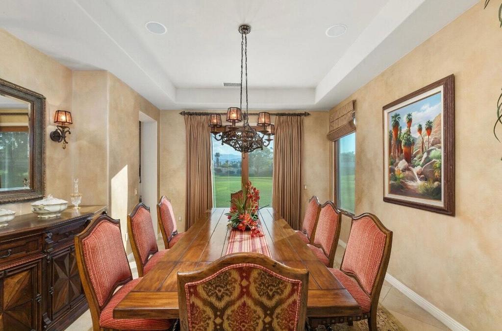 Welcome to Castle Harbor, an exclusive guard-gated enclave within the renowned Bermuda Dunes Country Club--home to just 31 custom residences offering privacy, prestige, and some of the best views in the community. This Tuscan-inspired estate captures the essence of desert luxury living, perfectly positioned on a premier corner lot overlooking the par-3 7th hole of the Classic Course with sweeping vistas of the Santa Rosa Mountains.Step through the handsome wooden gate into a serene courtyard retreat featuring a Pebble Tec pool and spa with cascading waterfalls, a granite outdoor kitchen with built-in BBQ and mini fridge, and a cozy fireplace seating area--ideal for entertaining under the stars. A long paver driveway leads to the three-car garage and provides a grand first impression of this meticulously designed residence.Inside, walls of glass in the expansive great room showcase panoramic golf and mountain views, complemented by a stunning stone fireplace and a dramatic entertainer's bar with wraparound windows. The gourmet kitchen is a chef's dream with GE Monogram stainless-steel appliances, granite countertops, a breakfast bar peninsula, walk-in pantry, and abundant cabinetry. A formal dining room and breakfast nook--each with gorgeous views--complete the perfect setting for gatherings large or small.The luxurious primary suite offers a tranquil sitting area with fireplace, dual cedar-lined walk-in closets, and a split double bath with separate vanities, water closets (one with bidet), and a private fitness or dressing room. Two additional guest bedrooms--one currently used as an office--are located within the main home, while a detached private casita with kitchenette provides ideal accommodations for visitors.Additional highlights include high ceilings, custom built-ins, a large laundry room with dog-wash station, and IID electric service for lower energy costs. Optional memberships are available at Bermuda Dunes Country Club, though not required, allowing flexibility in lifestyle.Conveniently located near the Acrisure Arena, world-class golf, tennis, pickleball, shopping, and dining--this stunning Castle Harbor estate offers the best of desert living with unmatched views, craftsmanship, and comfort.
