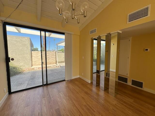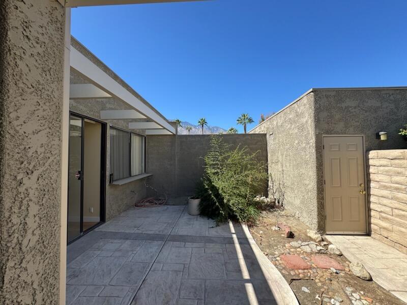 If you want to live in the highly sought after Palm Springs community of SUNRISE OASIS, & who doesn''t, here is the residence for you. This spaceous 2 bedroom 2 bathroom gem is waiting for you. As you approach the unit you will note its excellent curb appeal. The residence has a gate which leads to a very inviting courtyard which makes for a wonderful sitting area for morning coffee, afternoon spot to rest & relax or a place enjoy an evening adult beverage. As soon as you enter the property you will note how pleasingly light & bright it is. The lovely wood floors add to the charm of this one level condo. There is no one above nor below you. Both bedrooms are spacious with ample close space.. Each bathroom is well appointed with beautifuly upgraded tile flooring. The kitchen sports stainless steel appliances & lots of cabinet counter space. It too has beautifully upgraded tile flooring, There is a very nice dining area as well as a substantial living room / great room, ideal for entertaining or for just relaxing. The views of the mountain, the pool, the green belts and the many majestc trees are spectacular. There is a private 1 car garage which is directly accessible from the courtyard. The washer & dryer are in the garage. Come check this beauty out. You won't be diasppointed.