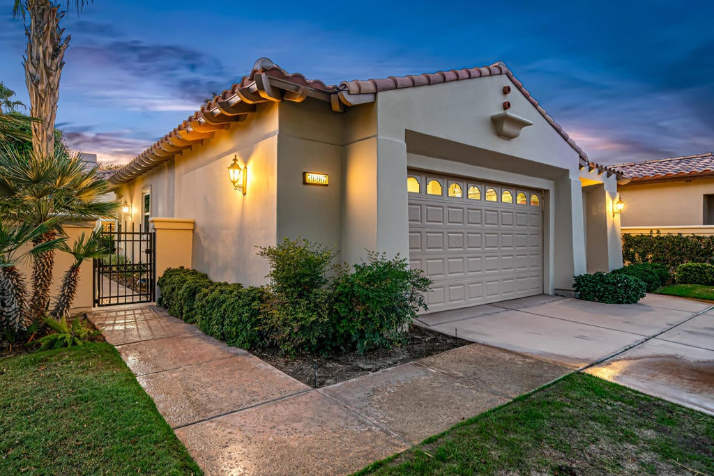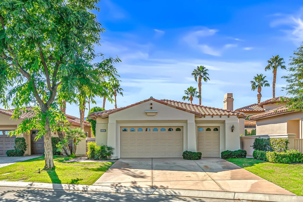 Situated on a premier lot near two fairways, also with lake and mountain vistas, this Encanto One residence captures the scenery and relaxed sophistication of Rancho La Quinta Country Club. High ceilings, abundant natural light, and quality construction define the open layout connecting the living room and fireplace to a generous kitchen finished with granite surfaces, island seating, and stainless-steel appliances. Designed for effortless entertaining, the backyard offers a pool with two waterfalls, raised spa, built-in barbecue station, and multiple seating areas covered and uncovered, surrounded by new desert landscaping and turf. Three bedrooms plus a den provide needed privacy; each bedroom is ensuite, including a spacious primary suite with a large walk-in closet and well-appointed bath. Additional features include a two-car garage with separate golf-cart bay and refined architectural detailing throughout. Homeownership includes guard-gated security and Athletic and Social memberships granting access to the Racquet Club's tennis, pickleball, bocce, fitness, and dining facilities, along with two eighteen-hole golf courses designed by Robert Trent Jones and Jerry Pate, respectively. The home sits off the 4th hole of the Pate course, and the 7th hole is across the lake. Furnishings included are per Seller Inventory List.