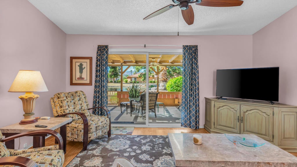 This beautifully updated Mountain and Pond View Condo, located in Indian Palms Country Club, offers a range of appealing features for the discerning buyer. The inviting home showcases white oak flooring, granite countertops in the kitchen, modern cabinetry, and an impressive covered rear patio. Situated on a cul-de-sac, it provides excellent bedroom separation, a lovely enclosed entry patio, a spacious driveway, and a single-car garage. This property is perfect as a full-time residence or an exquisite winter retreat for those looking to escape the harsh winter chill. Has been seasonally rented by return guests for 5+ years that are still interested in future returns!