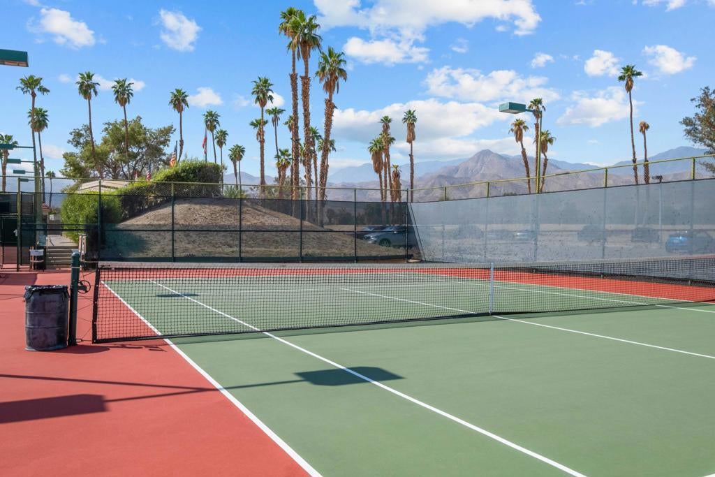 Welcome to 68035 Lakeland Drive, a stylish enclave nestled within Cathedral Canyon Country Club.This bright and cheerful condominium, perched on the second floor, is the perfect blend of comfort and style. Enter into a spacious open floor plan with gleaming easy-care flooring in the combined living/dining areas. An updated kitchen includes tile flooring, granite countertops, ample cabinetry, stainless gas range and refrigerator, and breakfast bar.Beyond the living room, a covered balcony provides a tranquil location to savor your morning coffee or al fresco dining. Enjoy beautiful neighborhood views of the surrounding landscape and dual sparkling pools. To the South and East, views of the mountains are nothing short of stunning!Enjoy the luxury of a spacious primary ensuite with an expanded closet, dual vanity, and direct patio access. On the opposite side of the condo, an additional bedroom and bathroom provide privacy and separation.Additional features include a laundry area with washer/dryer, a convenient outdoor storage closet, one covered parking space, and nearby guest parking.Cathedral Canyon Country Club features 450 acres of park-like environment including an 18-hole golf course and 10 tennis courts. Proximity to shopping, restaurants, Community Amphitheater, the CV Link, and the Agua Caliente Casino Cathedral City. The PSP International Airport and downtown Palm Springs are just minutes away.Perfect for your full-time residence, weekend getaways or seasonal living! HOA fee includes trash/recycling, cable, internet, pools/spas, security gates, exterior maintenance, and landscaping. Offered furnished.
