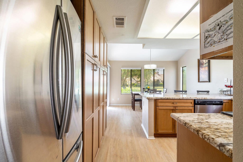 Welcome to Palm Desert Resort Country Club - an amenity-rich community offering something for everyone. Residents and their guests enjoy access to 20 pools and spas, golf, tennis, bocce ball, a full-service pro shop, clubhouse, cafe, and more -- all with no social membership fees. Pickleball enthusiasts will love the private club, which offers discounted rates for homeowners and access for their guests.This beautifully updated home is move-in ready and showcases a tasteful remodel, including a modernized kitchen and bathrooms, updated flooring, and elegant, upscale furnishings throughout. The classic floorplan features an indoor laundry room, private driveway, two-car garage, and a split layout with vaulted ceilings. The primary suite includes double sinks, a soaking tub, water closet, walk-in closet, and a spacious feel that combines comfort and functionality.Enjoy west-facing views and the convenience of a nearby pool. This gem won't last long - come experience the lifestyle at The Resorter!