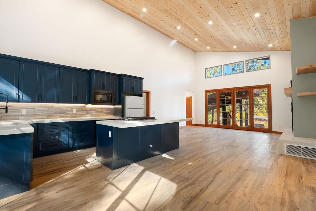 Welcome to Paradise! Beautiful Modern Mountain Cabin New Construction retreat in Idyllwild Pine Cove! This brand New 3 bedroom, 2.5 bathroom home spans 1,785 sq. ft. and beautifully blends contemporary design with rustic mountain charm. Enter through impressive double front doors into a spacious, open concept living area with vaulted ceilings and breathtaking mountain views. The designer kitchen features quartz countertops, a large island with seating, custom cabinetry, and warm under cabinet lighting perfect for gatherings and entertaining. Each bedroom offers French doors opening to private decks surrounded by nature. A functional mud room adds everyday convenience, while the property provides plenty of space for RV parking, ideal for adventure seekers and guests. Whether a full time residence or a weekend getaway, this new construction modern cabin home captures the best of mountain living in Idyllwild. A rare opportunity to own a New Modern Cabin retreat in one of Idyllwild's most peaceful settings!
