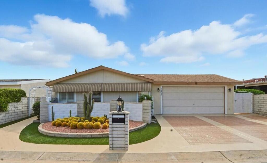 Breathtaking panoramic views of the Santa Rosa Mountains are yours as you enjoy living in this perfect turnkey home-- Furnishings included, assumable Solar lease & permanent foundation for ease of financing. Great curb appeal with 2-car garage, desert landscaping & high-end decorative stone driveway. Enter in to the living room with high plaster ceilings, lots of light from the French sliding doors with unlimited mountain views. A gas fireplace for that winter ambiance, separate media tv space & dining area for entertaining your guests as they enjoy the views. New carpeting & laminate flooring throughout. The kitchen has a wonderful dining area as well with plantation shutters, a round pedestal table perfectly placed for morning breakfast & coffee while enjoying the peaceful view. Quartz counters, large double sink, gas stove & oven for the discerning Chef in you. This home not only has two bedrooms but an additional reading/hobby room and also a private office with built-in shelving & computer station. The primary bedroom has a walk-in closet, ceiling fan & en-suite bath with separate shower & soaking tub. New flooring, toilet & vanity. Your guests will love the newly remodeled guest bath with tile shower, new flooring, vanity & toilet. The guest room has ceiling fan & plantation shutters. One of the best features of this home is the wrap-around covered patio with decorative custom concrete tiles. There is an outdoor dining area for your Alfresco entertaining, with ceiling fan & lovely patio furniture with plenty of seating. You can spend hours enjoying the views & seeing the birds soaring over the riverbed. The garage is a dream with epoxy flooring, tons of built in storage, sink & laundry area. Everything needed for the organized garage, including your own golfcart! Portola C.C. is one of the most desirable 55+gated communities in Palm Desert & not only do you own the land, but the low HOA fee includes the l8-hole par 3 golf course for the owners. The newly remodeded clubhouse has its own Pub, fitness room, billiards,& commercial kitchen for all of the great community get-togethers. There are 3 pools, pickleball, bocce ball & tennis courts,dog park & plenty of social clubs & activities to enjoy. We are well-located near El Paseo & all of its shops & restaurants & the Palm Desert Park with its walking trails & Aquatic Center, McCallum Theatre & Eisenhower Hospital for your medical needs. Make an appt. to see this great home!