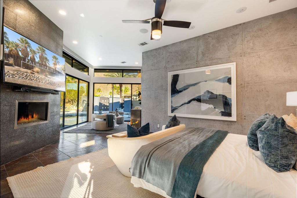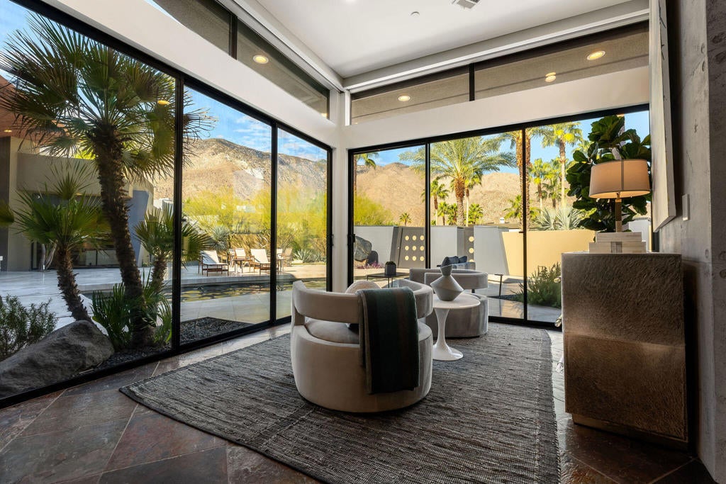 A masterwork by award-winning architect Narendra Patel, this residence is one of the most significant offerings within the gated enclave of Alta in South Palm Springs. With bold modernist lines, dramatic volumes, and expansive walls of glass, the home is designed to frame sweeping views of the San Jacinto Mountains while preserving a sense of complete privacy.Interiors flow effortlessly between the spectacular great room, wet bar, formal dining area, and chef's kitchen--each space oriented to blur the boundaries between indoors and out. The primary suite is a private sanctuary with fireplace, sitting area, spa-caliber bath, and direct pool access. Attached casita with kitchenette and private entrance offers flexibility for guests. Sculptural water features, fountains, curated landscaping, and multiple terraces encircle the resort-style pool and spa, creating a setting that is both serene and dramatic. Rarely does a property so seamlessly combine architectural pedigree, privacy, and the essence of Palm Springs modern luxury. Exceptional offering.