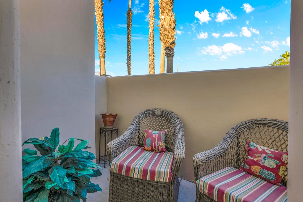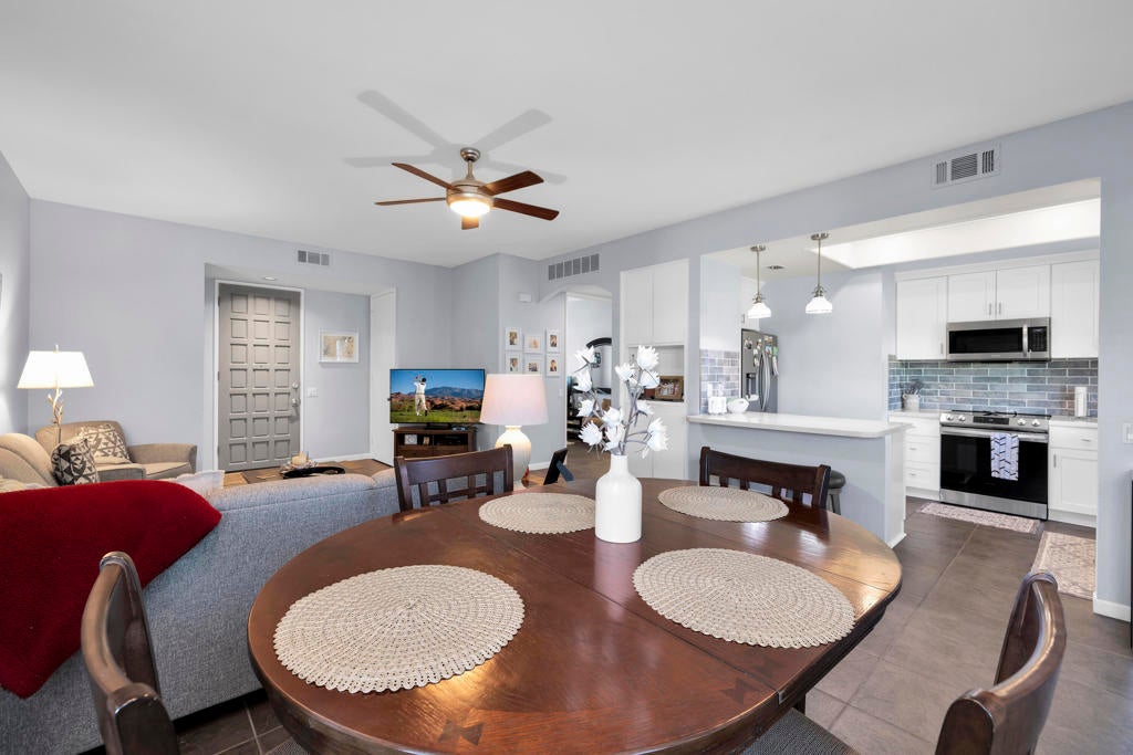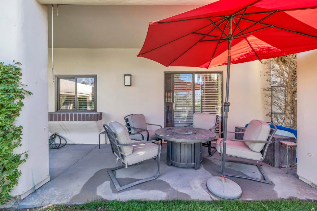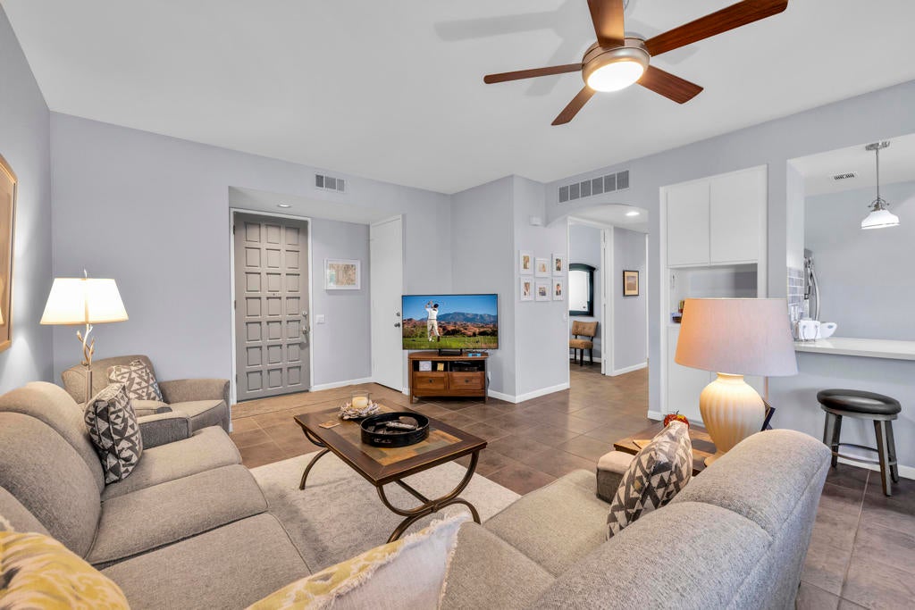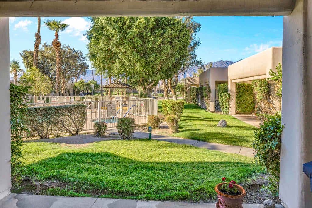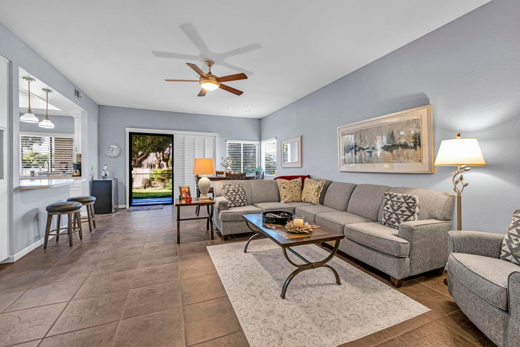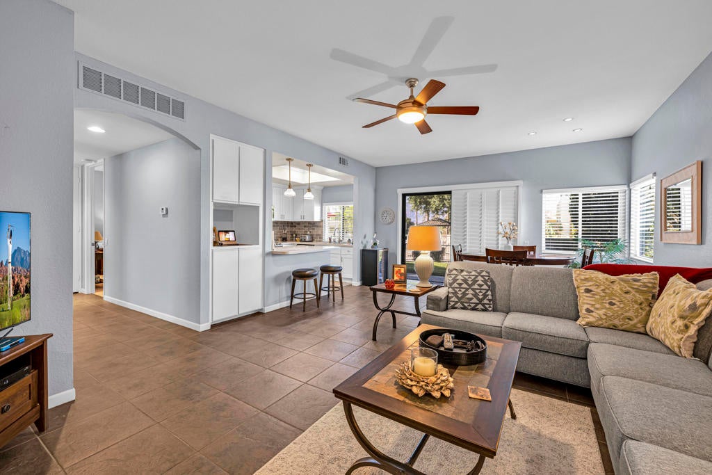 Beautiful Top Notch Toltec Floor plan two bedroom. Kitchen has been remodeled, Quartz counter Tops, new appliances, beautiful back splash, New Kitchen window. Kitchen opens up to the Living Room! Living area has beautiful tile flooring, Nice furnishings Brand New Side Windows, Shutters, Freshly Painted, Ceiling Fans. Master Bedroom has nice carpet, Shutters with sliding door That leads out to the patio area and pool. .Walk-in shower, Quartz counter Tops with dual sinks! The guest bath has been updated with Dual Quartz counter tops, shower & Tub. Guest Bedroom has New windows, Freshly Painted, Ceiling fan Beautifully furnished. Furnishings are perfect! Side fence for added for privacy, Electric garage, Gated front entry, Best Deal here at Desert Princess, Super Clean light & Bright condo move in ready.. Covered patio with desert landscaping is perfect for outdoor entertaining and relaxing with mountain & pool view! Desert Princess offers a 27-hole PGA Championship golf course! HOA includes Social Membership to club with 20% off food, Cable with HBO & Showtime, Social, Tennis, Fitness Memberships, beautiful grounds & more! Close to Casinos, Theaters Restaurants, Airport, You're close to all the desert has to offer. Easy to show. Land Lease 2044.