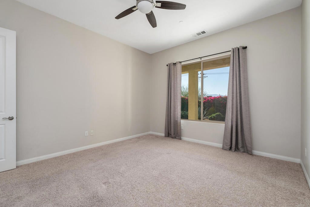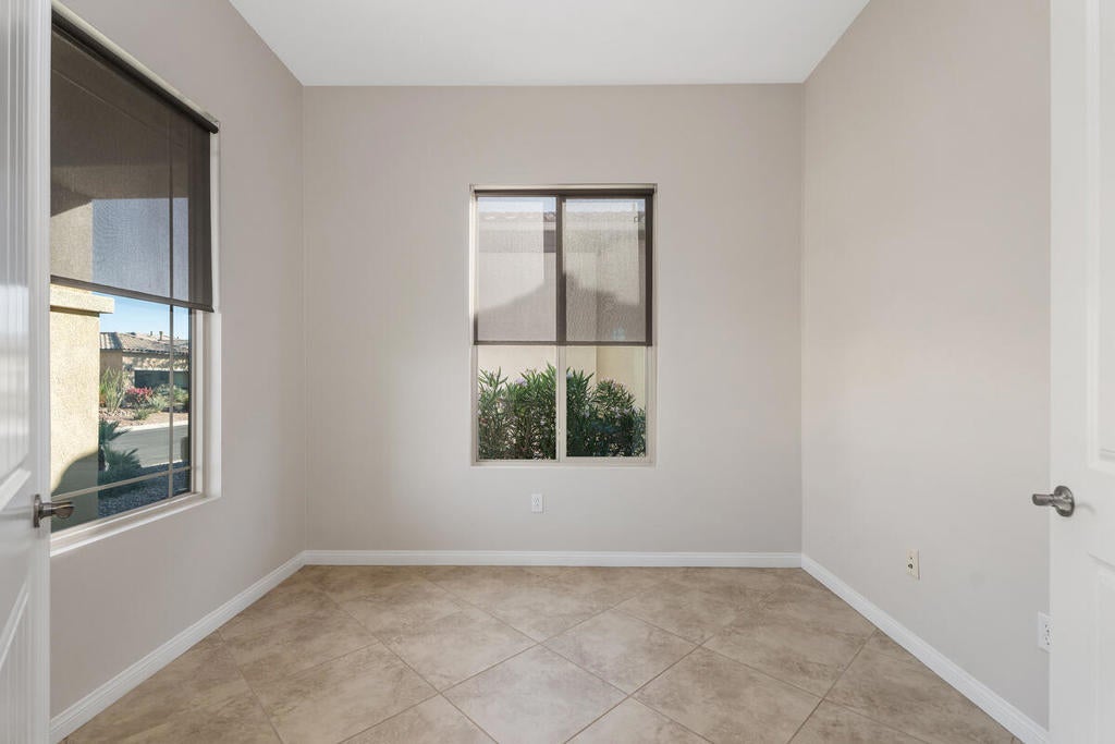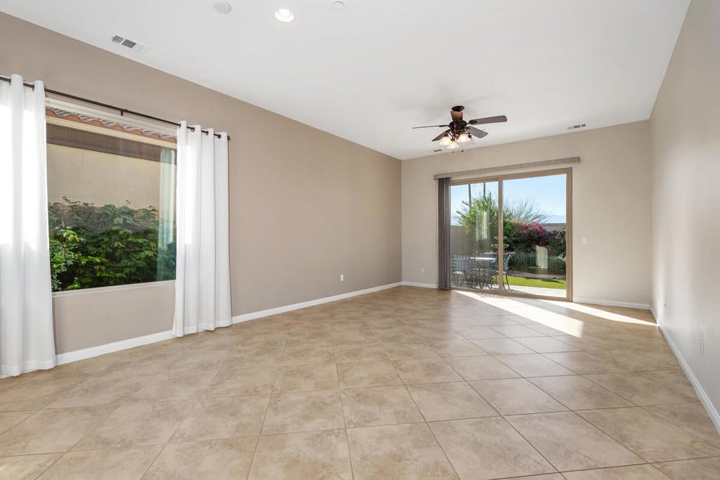 Refreshed and ready for new tenants! Popular Hideaway model that has been beautifully maintained and is offered for LONG TERM LEASE. This home features 2 bedrooms, 2 bathrooms, plus a versatile den-ideal for an office, guest room, or hobby space. An open floor plan with large windows to frame the panoramic mountain views. The chef's kitchen with island seating and full dining area makes entertaining guests a breeze. Ceramic tile flooring throughout with the exception of the bedrooms. The separate laundry room has built-in cabinets. There is a 2-car attached garage. The private backyard provides a desert retreat complete with recently updated low maintenance landscaping, a fountain and artificial grass. Located in the desirable gated 55+ community of Sun City Shadow Hills. Among the many amenities are 2 golf courses, indoor and outdoor swimming pools and spas. State-of-the-art fitness centers, tennis, bocce ball, pickle ball courts and over 50 social clubs. The home will be available after November 10th and is offered unfurnished. A pet considered upon approval. Close to shopping, dining, entertainment, casinos and a short drive to PS Airport. Easy access to I10 freeway. Don't wait to make this your new desert home!