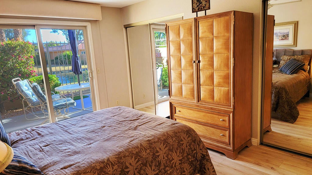 This is the one you have been waiting for! Your Desert Oasisawaits in this beautifully updated and well maintained 2-bedroom, 2-bath turnkey end-unit condo in the exquisite Indian PalmsCountry Club. Rest easy knowing your condo has beenthoughtfully updated with a remodeled primary shower withhandicap bar, a new water heater(2025) and newer HVACsystem. The unit was also recently re-roofed and painted andwindows were replaced with top of the line Milgard windows.Enjoy a front patio with outdoor entertainment bar andbarbecue. This is a desired location in the HOA as your backpatio offers the sounds of a relaxing waterfall and and lakeview from your enclosed patio. Enjoy watching the birds withearly morning coffee and lunch in the afternoon shade. Thehome offers a garage and parking for two vehicles on. With your purchase of 82088 Cochran, you haveexclusive deeded access to the Indian Palms Lifestyle Center.New memberships are currently sold out - but with your deed- you are guaranteed a spot in the membership-onlyclubhouse. The Lifestyle Center offers water aerobics, yogaand stretch classes, bocce ball leagues, pickleball and tennis.In addition, HOA-14 maintains all of your landscaping andprovides access to 2 local pools. Indian Palms Country Clubfeatures a 27-hole championship golf course and is locatedminutes from the world-famous Empire Polo Grounds. Cometake a tour and experience the stunning resort lifestyleawaiting you. Don't miss your chance to own a piece ofparadise -- where everyday feels like a vacation!