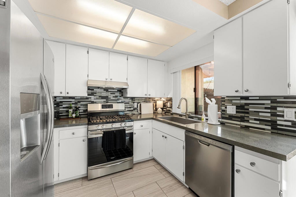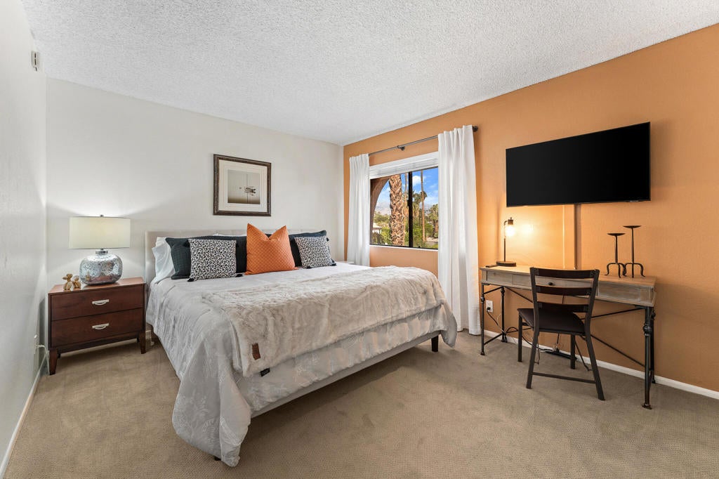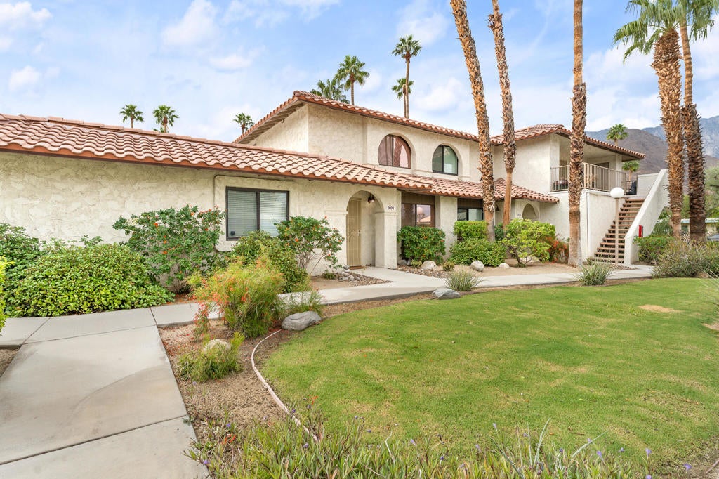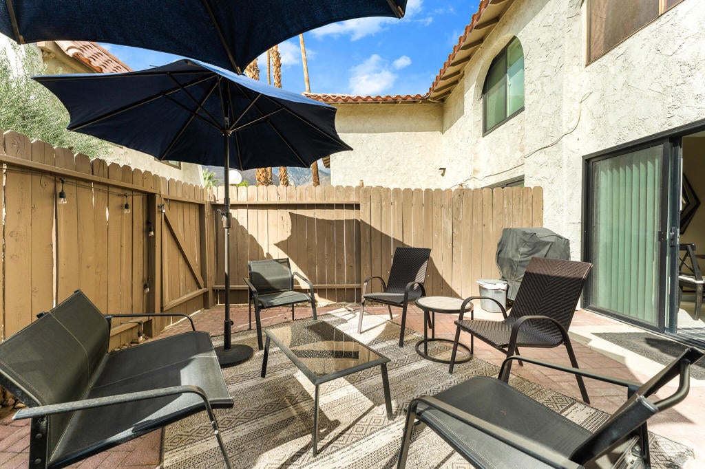 LONG OR SHORT TERM RENTAL | 30-Day Minimum Welcome to Casa de Oro, a beautifully landscaped community nestled in the highly sought-after Little Tuscany neighborhood of Palm Springs. This stylishly updated 2-bedroom, 1.5-bath townhome offers the ideal mix of comfort, convenience, and resort-style living--available for long or short-term stays with a 30-day minimum. Step inside to a bright and open main level featuring 24x12 porcelain tile flooring, a fully remodeled modern white kitchen with Quartz countertops, stainless steel appliances, a chic tile backsplash, and a full laundry room. A sleek 3/4 bath on the main level adds everyday convenience for guests. Upstairs, you'll find two generously sized bedrooms with soft carpeting and mountain peek views of the San Jacinto range. The remodeled full bathroom includes a dual-use layout with an additional vanity area in the primary bedroom, perfect for added privacy and function. Relax or entertain on your private brick-tiled patio, which offers a tranquil outdoor escape and subtle mountain views. A detached one-car garage provides secure parking and additional storage. Residents of Casa de Oro enjoy access to a wide range of amenities including two pools, two spas, a clubhouse/rec room, two tennis courts, and a pickleball court. The location is unbeatable--just minutes from Uptown and Downtown Palm Springs, where you'll find top-rated dining, shopping, entertainment, and nightlife. Furnishings are optional, and large dogs are welcome, making this home a flexible, pet-friendly rental in a prime location. Three Month $2895, Six Month $2795, Nine Month $2695, Twelve Month $2595