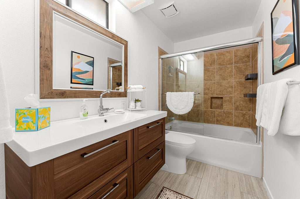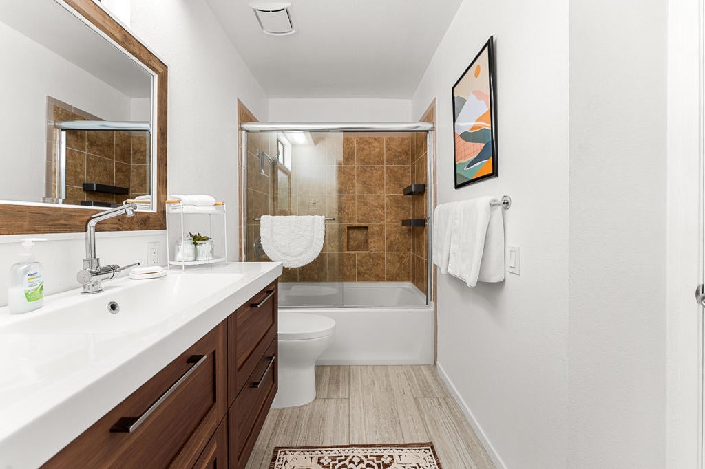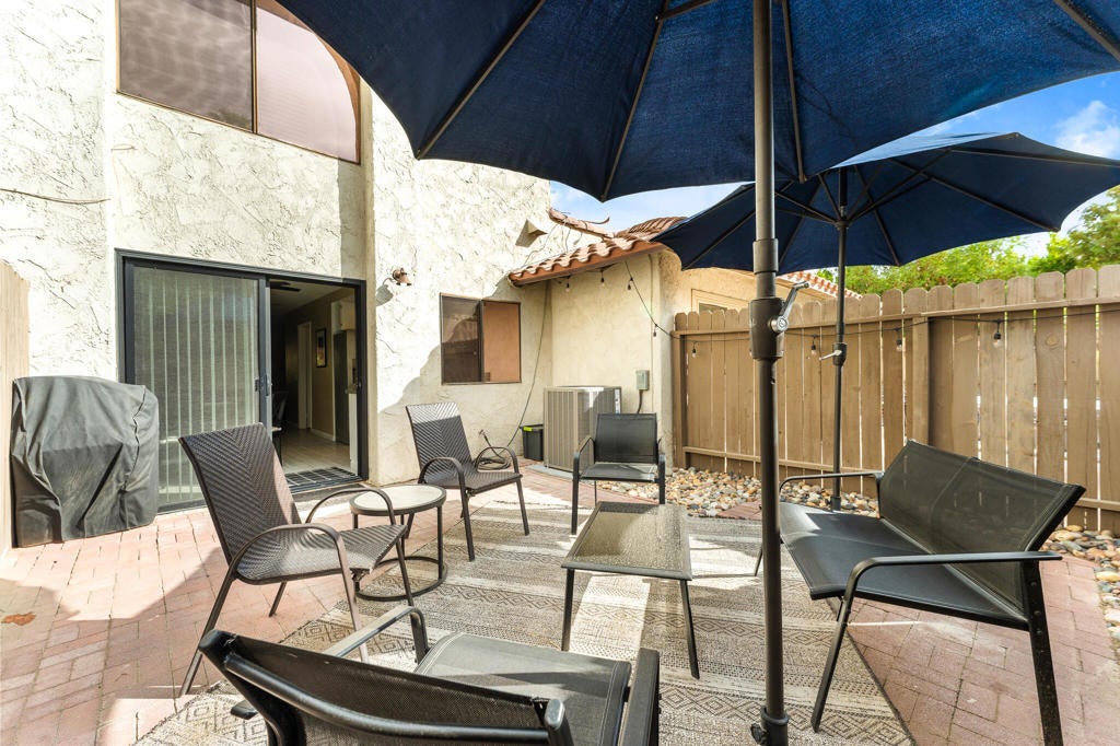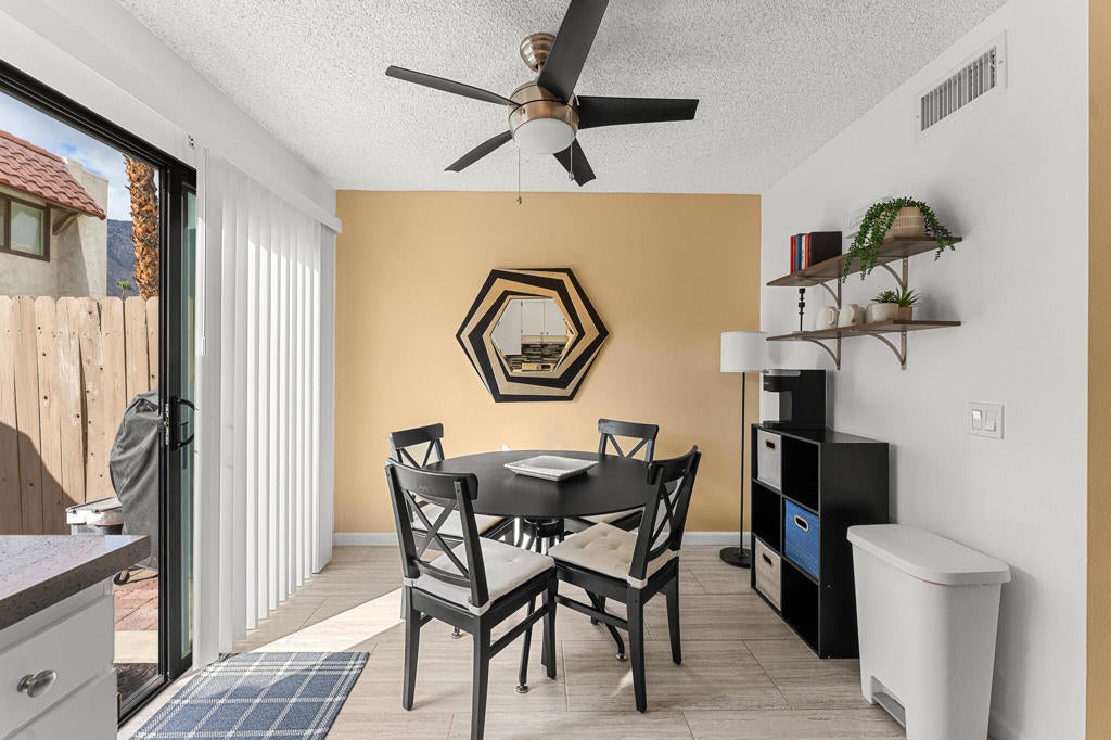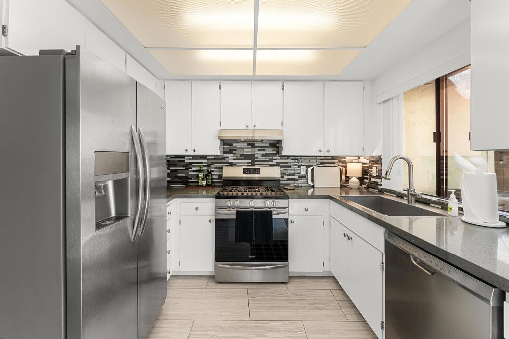 LONG OR SHORT TERM RENTAL | 30-Day Minimum Welcome to Casa de Oro, a beautifully landscaped community nestled in the highly sought-after Little Tuscany neighborhood of Palm Springs. This stylishly updated 2-bedroom, 1.5-bath townhome offers the ideal mix of comfort, convenience, and resort-style living--available for long or short-term stays with a 30-day minimum. Step inside to a bright and open main level featuring 24x12 porcelain tile flooring, a fully remodeled modern white kitchen with Quartz countertops, stainless steel appliances, a chic tile backsplash, and a full laundry room. A sleek 3/4 bath on the main level adds everyday convenience for guests. Upstairs, you'll find two generously sized bedrooms with soft carpeting and mountain peek views of the San Jacinto range. The remodeled full bathroom includes a dual-use layout with an additional vanity area in the primary bedroom, perfect for added privacy and function. Relax or entertain on your private brick-tiled patio, which offers a tranquil outdoor escape and subtle mountain views. A detached one-car garage provides secure parking and additional storage. Residents of Casa de Oro enjoy access to a wide range of amenities including two pools, two spas, a clubhouse/rec room, two tennis courts, and a pickleball court. The location is unbeatable--just minutes from Uptown and Downtown Palm Springs, where you'll find top-rated dining, shopping, entertainment, and nightlife. Furnishings are optional, and large dogs are welcome, making this home a flexible, pet-friendly rental in a prime location. Three Month $2895, Six Month $2795, Nine Month $2695, Twelve Month $2595