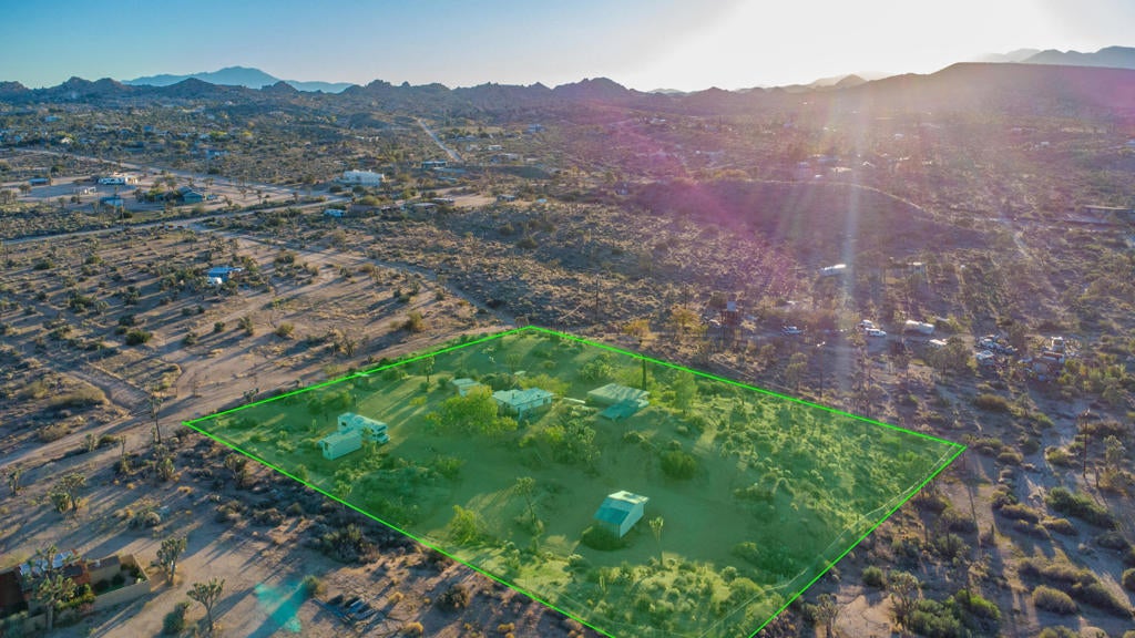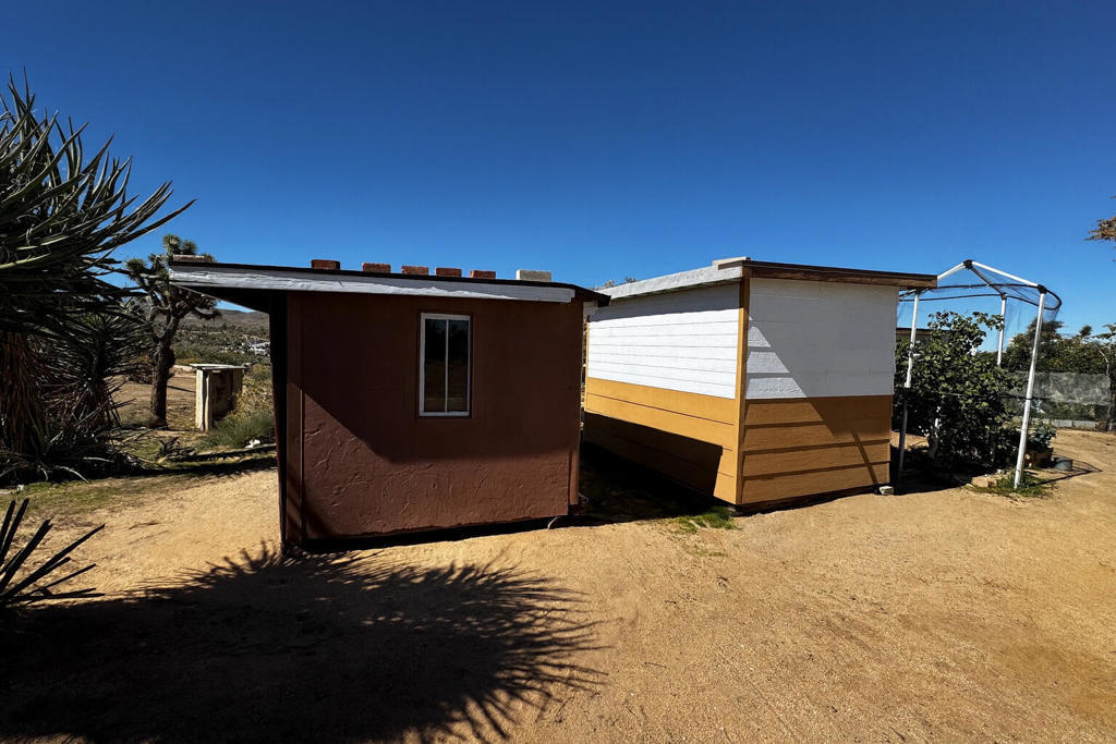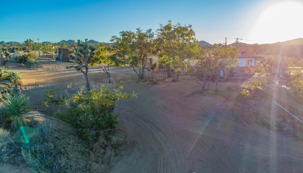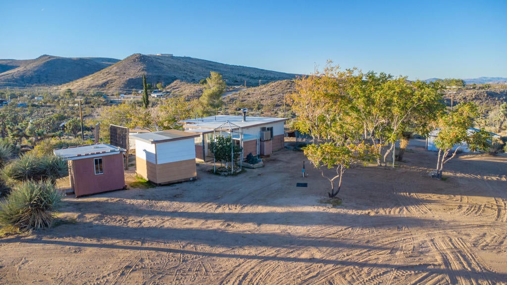 Call all investors! Looking for a Great Investment Opportunity, well this is it! Charming 352 sq. ft. single-family residence set on 2.10 acres of beautiful desert landscape. This fully perimeter-fenced property offers stunning mountain views, plenty of flat, usable land, and is dotted with fruit and shade trees for a peaceful setting. The home needs some work but has great potential, featuring a small kitchen, laundry area, bathroom, and a surprising amount of usable space for its size. A detached two-car garage with underground storage, plus three additional outbuildings, provide ample room for tools, equipment, or creative use. With a little vision, this property can truly shine!Buyer to verify all permits, square footage, and property use to their satisfaction. Broker and agent make no guarantees.