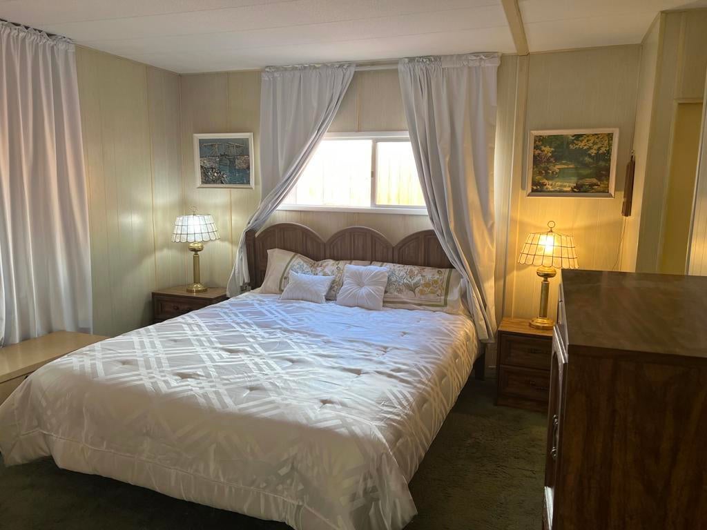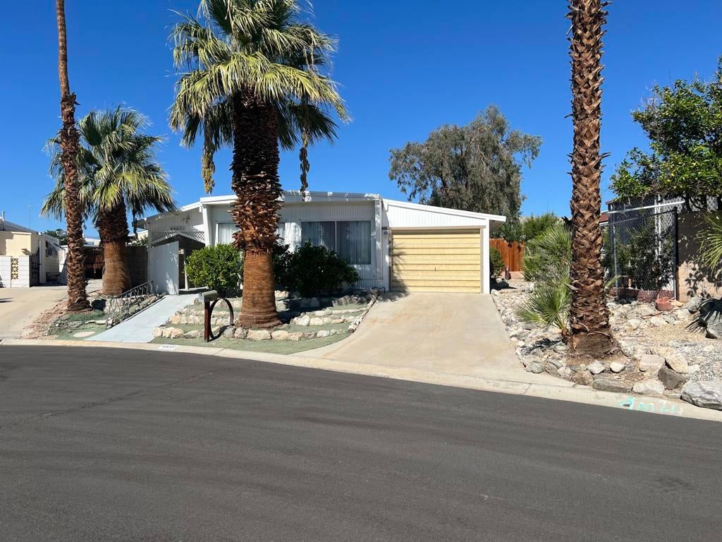 Beautifully Upgraded Home!! With Great Mountain Views!Enjoy resort-style living in this spacious 3-bedroom, 2-bath, located on a quiet cul-de-sac street in the highly desirable Desert Crest Country Club, a 55+ community where YOU OWN THE LAND-- no space rent! This beautiful home features brand-new laminate flooring throughout the house except in 2 bedrooms. newly upgraded master shower, new water heater, central A/C Unit, including a two-car garage with a new automatic garage door opener and a great convenience workshop room. fully furnished with all appliances included, making it truly move-in ready.The community's low HOA fee of only $148 per month grants access to exceptional amenities such as unlimited golf on a private 9-hole par-3 course, a natural hot mineral water pool and spa, and a clubhouse with a gym, library, game room, and entertainment area. Residents also enjoy eight enclosed shuffleboard courts and a variety of fun activities like bingo, aqua aerobics, line dancing, and community dinners -- creating a vibrant, welcoming atmosphere.With county-maintained roads, city water and sewer, natural gas, and cable/satellite services, this home offers comfort, convenience, and value. Don't miss this opportunity to own a beautiful, well-maintained home in a peaceful and active community surrounded by breathtaking desert scenery.