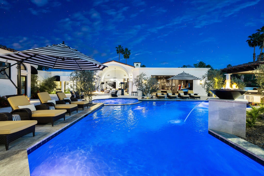 Behind the 24-hour guarded gates of Mission Ranch in Rancho Mirage, this remarkable 1.26-acre estate stands out for its unparalleled features - including a rare 10-car garage and 8 ensuite bedrooms, making it one of the desert's most unique luxury properties.The impressive garage configuration includes an 8-car tandem showcase garage - ideal for collectors - plus a separate 2-car attached garage at the main residence. For car enthusiasts or those who simply appreciate grand scale, this space is unmatched in both capacity and presentation. Thoughtfully reimagined, the nearly 9,400-square-foot residence offers refined living, timeless architecture, and resort-style amenities throughout. Designed for ultimate flexibility, the home features a combination of expansive suites and private guest quarters, ensuring comfort and privacy for all. A dramatic foyer welcomes you with soaring ceilings, intricate detailing, and a statement chandelier that sets the tone for the home's sophisticated design. Expansive living spaces flow seamlessly into a stylish game and media lounge with a restored vintage Brunswick pool table, pinball machines, and a sleek wet bar - perfect for entertaining. The chef's kitchen is a showpiece of form and function, equipped with Sub-Zero and Wolf appliances, dual dishwashers, an oversized island, and a full butler's kitchen tucked discreetly behind for catering or event prep. The primary suite evokes the tranquility of a five-star resort, featuring dual spa-inspired bathrooms and custom dressing areas. Outdoors, the estate becomes a private resort of its own - complete with a sparkling pool and spa surrounded by fire and water features, a grand pavilion with outdoor kitchen and pizza oven, and a lighted sports court that accommodates tennis, pickleball, and basketball. Residents of Mission Ranch also enjoy exclusive access to community equestrian facilities, a rare amenity for horse enthusiasts within this prestigious enclave. Located just minutes from Eisenhower Medical Center, world-class golf, and fine dining, this property offers exceptional convenience for physicians, executives, and those who value privacy and refinement. Every detail of this home reflects a commitment to craftsmanship, comfort, and modern luxury. More than a residence - it's a lifestyle defined by space, sophistication, and statement design.
