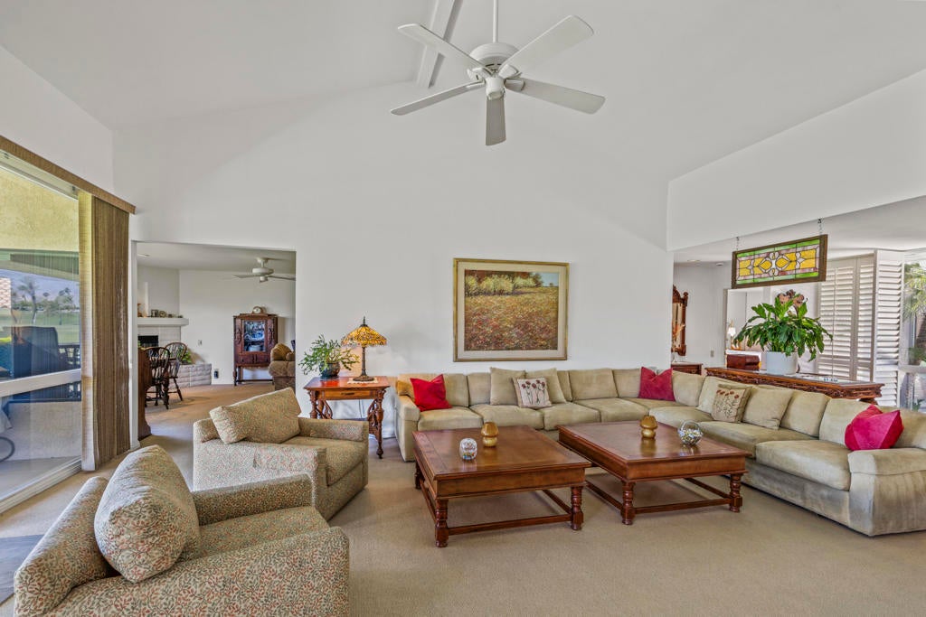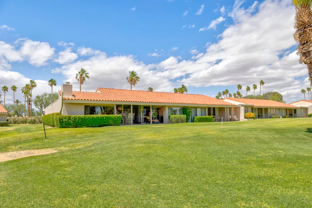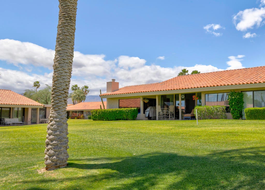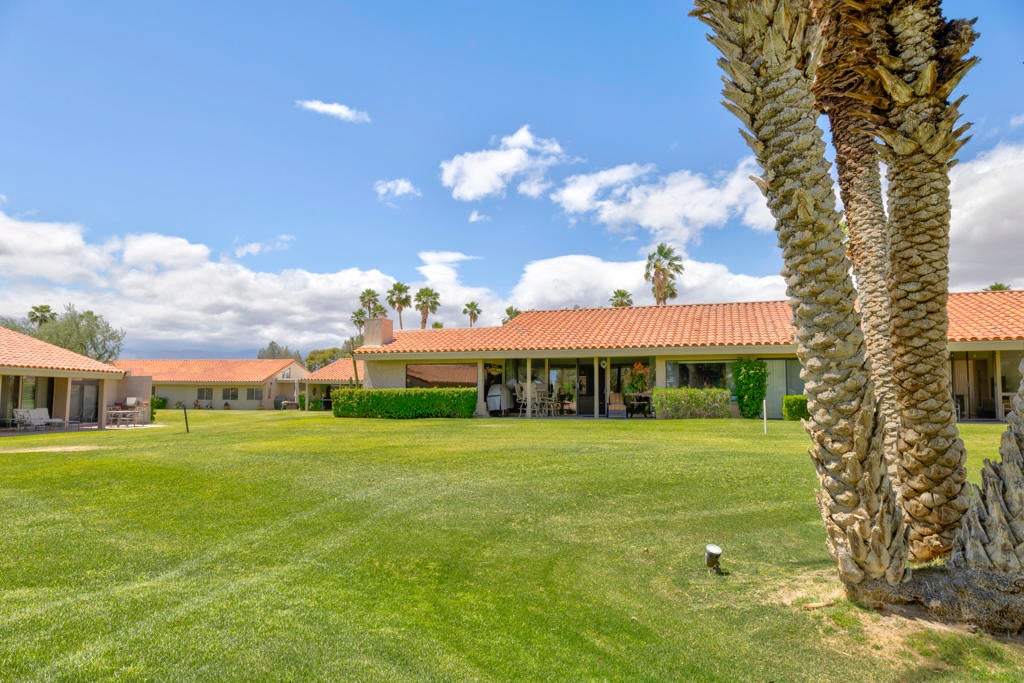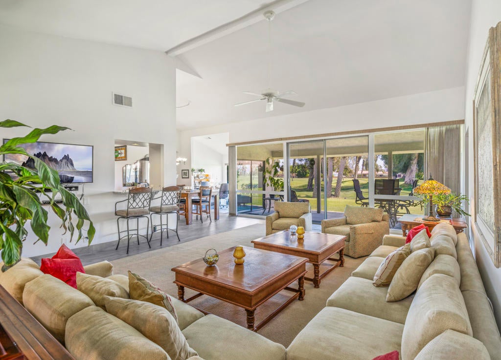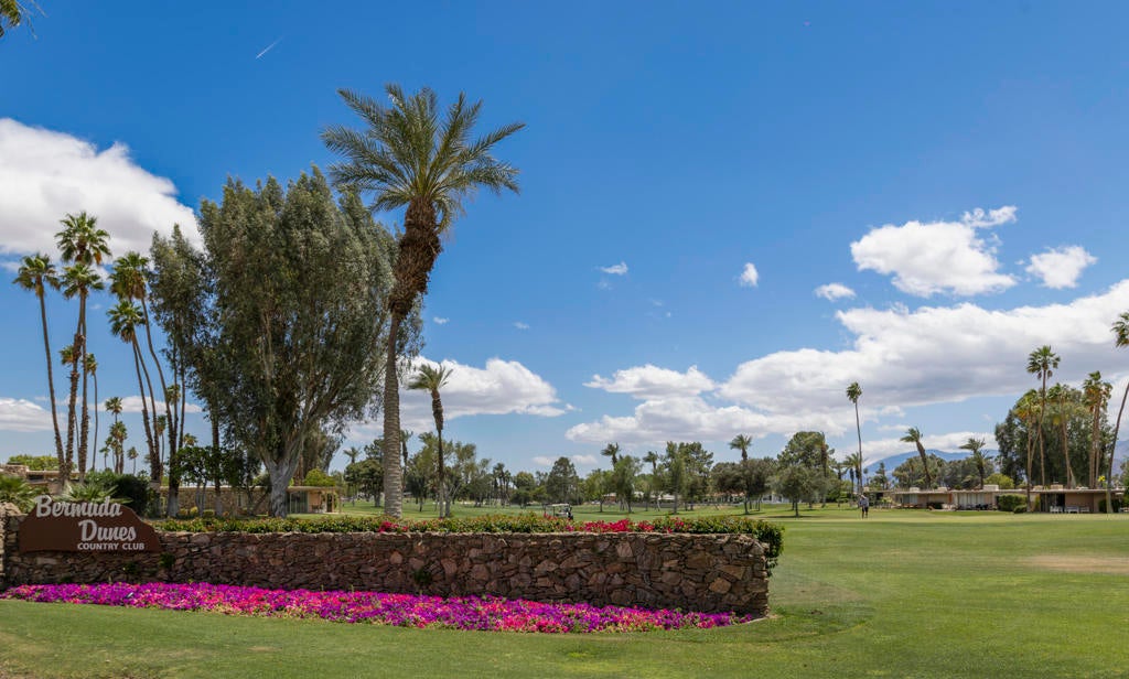 Welcome back to the desert lifestyle you've been dreaming of! This beautifully spacious 3-bedroom, 3-bath condo in the sought-after Montego West enclave of Bermuda Dunes Country Club offers nearly 2,400 sq ft of comfortable elegance. The open-concept living and dining areas feature dramatic vaulted ceilings, a fireplace, and panoramic views of the golf course, driving range, clubhouse, and surrounding mountains.A versatile den/family room--complete with its own fireplace--can easily serve as a second primary suite, while a conveniently added office nook just off the dining room enhances functionality and flow.Whether you're seeking a full-time home or a seasonal retreat, this property offers resort-style living at its finest. Montego West residents enjoy access to multiple pools, spas, and tennis courts, with HOA fees covering exterior maintenance, roofing, landscaping, trash, and more. Located within Imperial Irrigation District for lower electric rates and secured by 24-hour guard-gated access, this home perfectly blends comfort, convenience, and value.