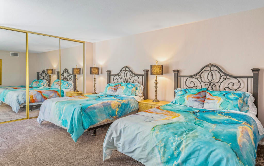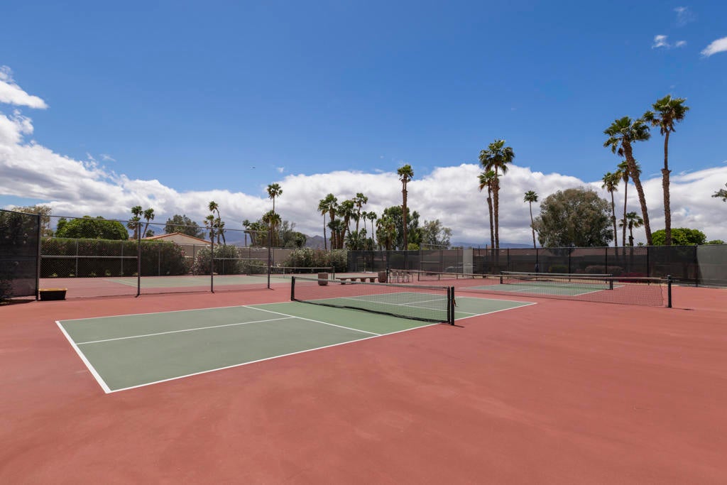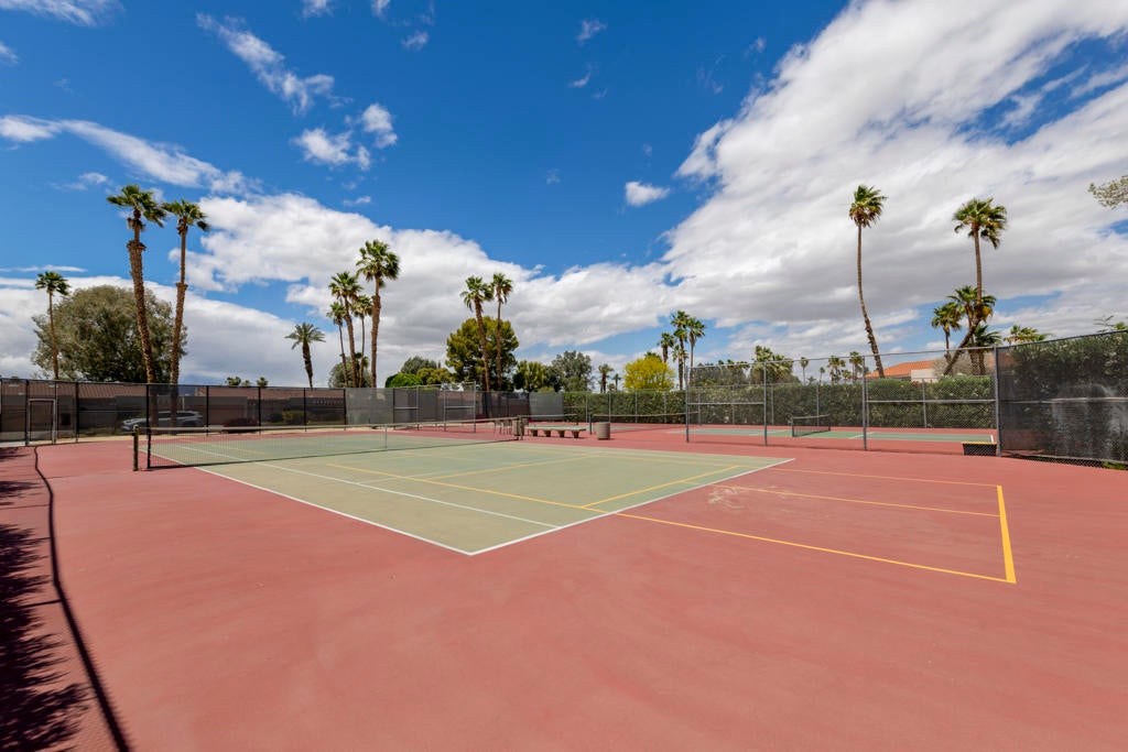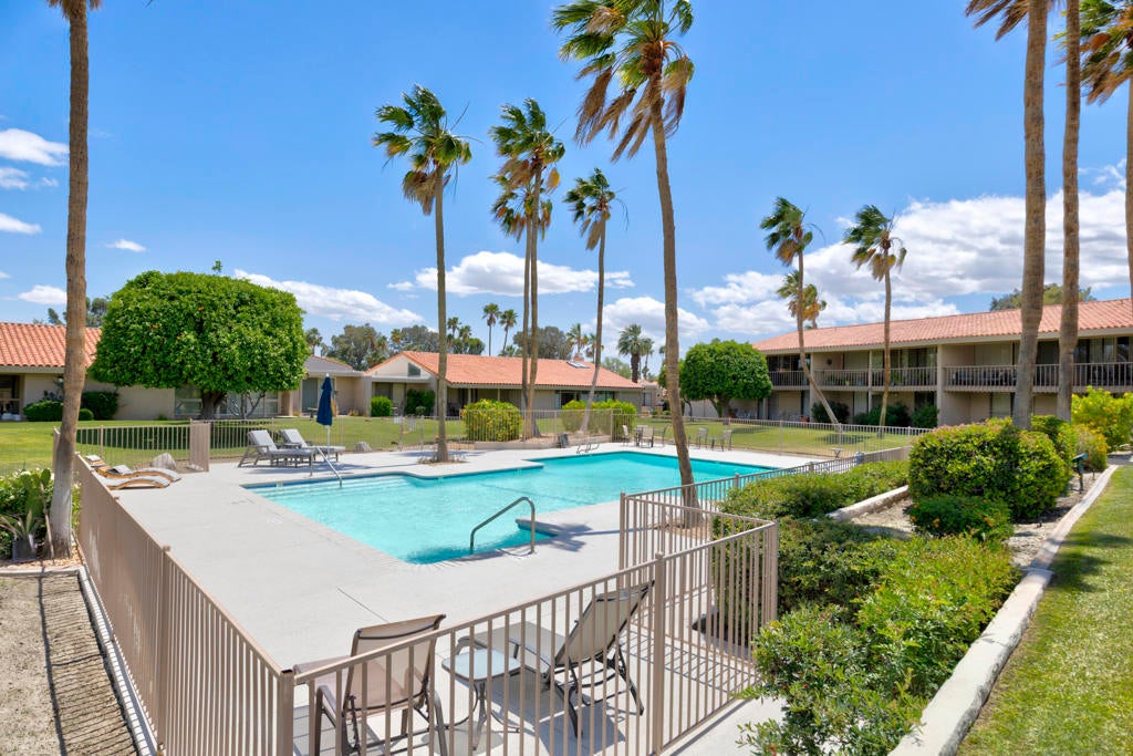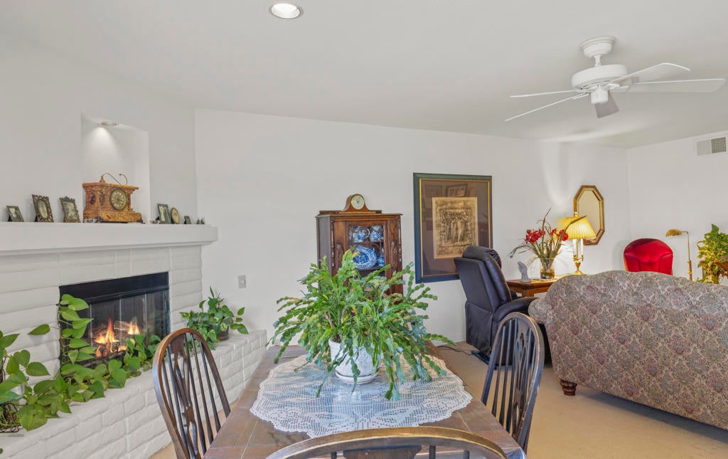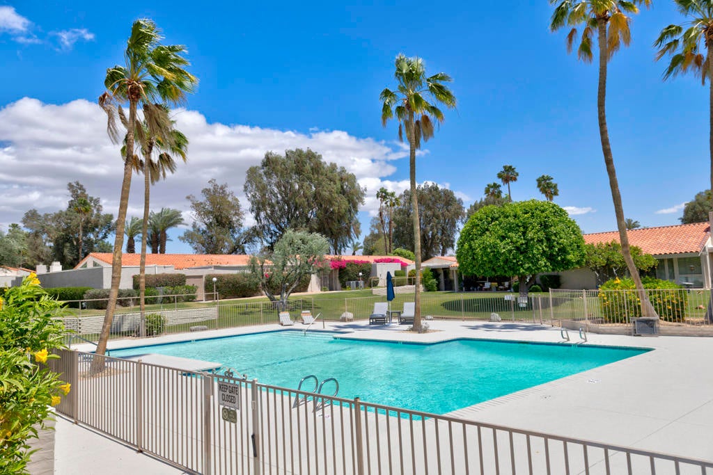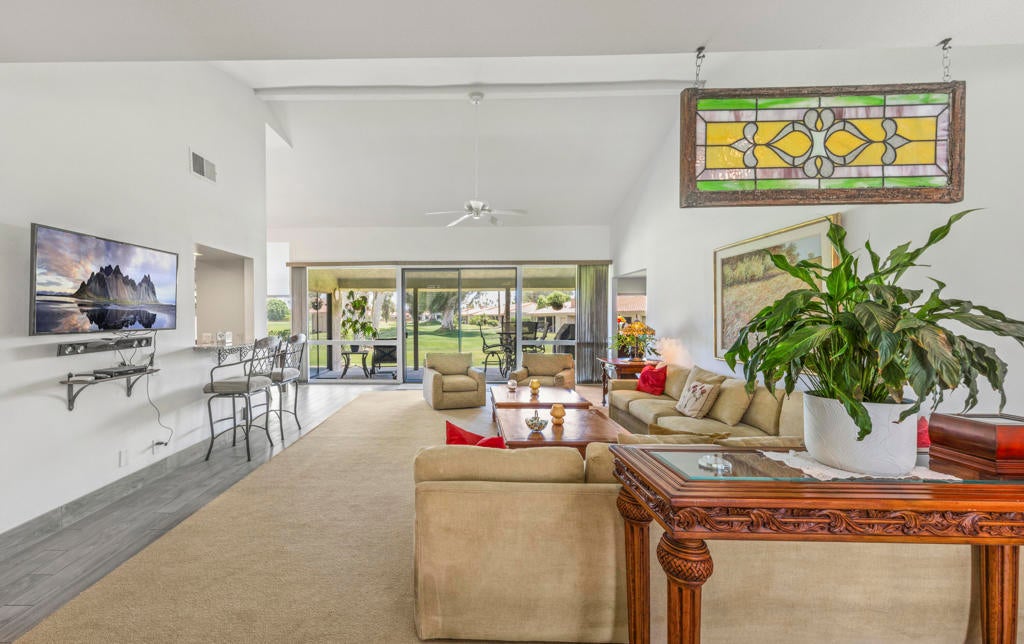 Welcome back to the desert lifestyle you've been dreaming of! This beautifully spacious 3-bedroom, 3-bath condo in the sought-after Montego West enclave of Bermuda Dunes Country Club offers nearly 2,400 sq ft of comfortable elegance. The open-concept living and dining areas feature dramatic vaulted ceilings, a fireplace, and panoramic views of the golf course, driving range, clubhouse, and surrounding mountains.A versatile den/family room--complete with its own fireplace--can easily serve as a second primary suite, while a conveniently added office nook just off the dining room enhances functionality and flow.Whether you're seeking a full-time home or a seasonal retreat, this property offers resort-style living at its finest. Montego West residents enjoy access to multiple pools, spas, and tennis courts, with HOA fees covering exterior maintenance, roofing, landscaping, trash, and more. Located within Imperial Irrigation District for lower electric rates and secured by 24-hour guard-gated access, this home perfectly blends comfort, convenience, and value.