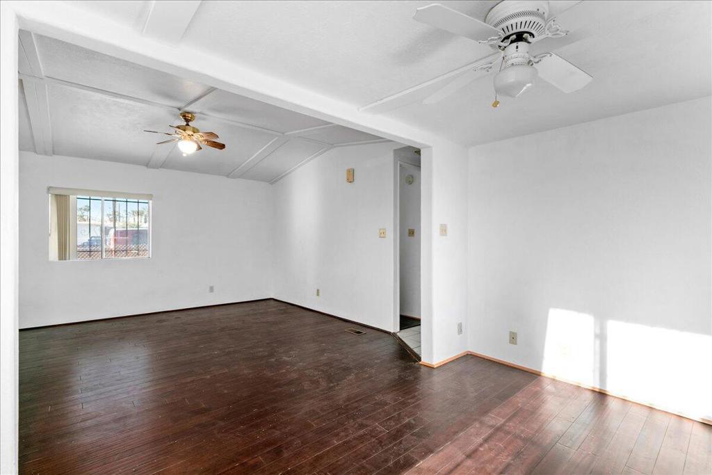 SELLER FINANCING! COME SEE this well maintained 2 bedroom 1.5 bath 1142 sqft. home with GARAGE! New floors and new paint. You own the land, No rental space fee, low HOA includes a Unlimited Golf. Full Size1983 Model with extensions and Bonus Room. This house feels like a home with new DARKWOOD FLOORING and real indoor textured walls, not paneling. Come see the large OPEN KITCHEN with extra cabinet space and breakfast nook. The front door entrance opens up to large family room with vaulted ceilings & large windows. Convenient Indoor Laundry Area which includes washer and dryer. This home has back door entrance from Garage. Extra rooms include a Bonus Room with private entrance. The backyard is a private Hacienda-style patio with many possibilities. This patio includes a fountain and fire pit. Check out the enclosed outdoor ''Catio'' for pets. LARGE LOT ample parking, garage & a workshop, and other patio areas. HALF SPLIT IN BEDROOM. This secure home is equipped with security bars on all windows & doors. If you want to live a luxury lifestyle that's also affordable, make this your new home in this peaceful Tri Palm Estates Resort community. Because you own the land there is no rental space fee. The low HOA includes Unlimited Golf and all the pool & Spa amenities. Located in Tri Palm Estates is a 55+ well maintained Golf Course community featuring 27 holes of Golf & 2 Practice Greens, 3 Swimming Pools/ 2 Spas, 2 Tennis Courts, Pickleball Courts and an active Clubhouse. Great opportunity Seller financing, low down payment, OWNER WILL CARRY up to 25 years.