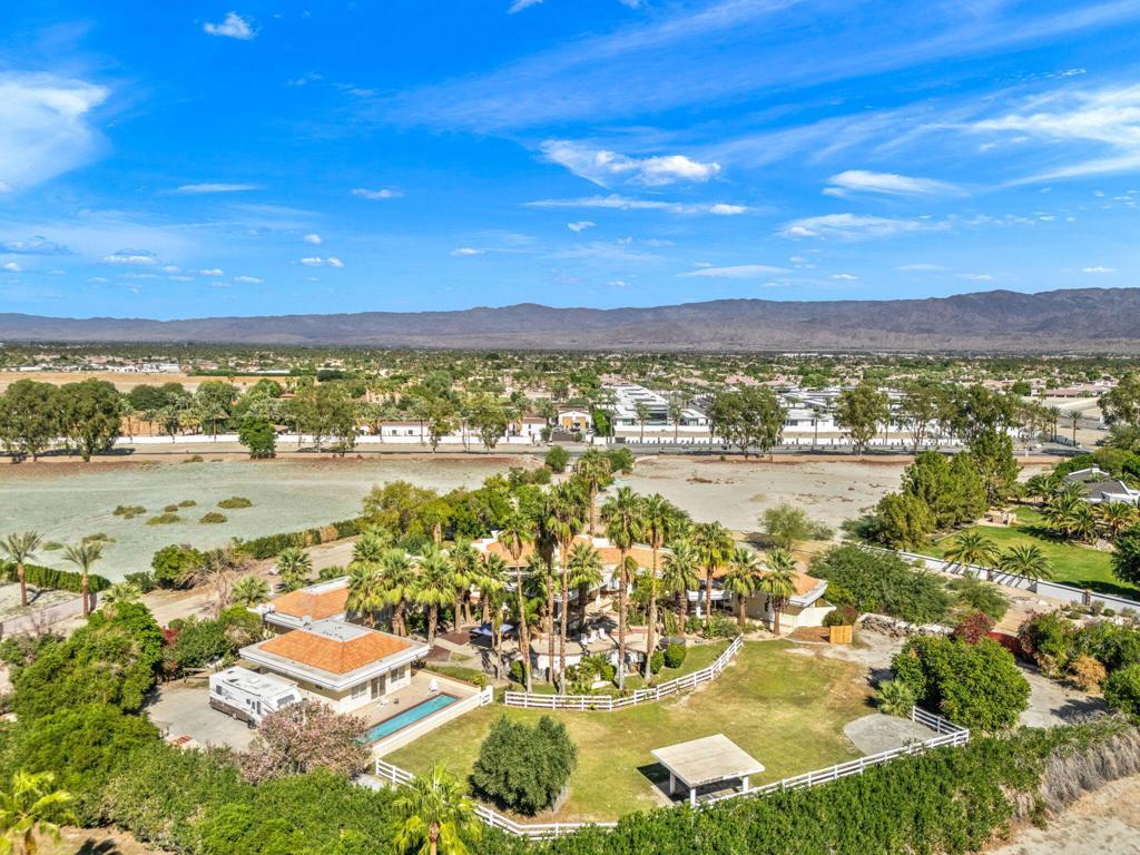 Welcome to Vista Montana Acres, a 2.5 acre equestrian estate comprised of 2 properties. The first is a spacious 5 bedroom, 4.5 bath home with stunning vaulted ceilings, an open concept kitchen with upgraded Viking appliances, separate formal dining and living rooms, wet bar, 3 fireplaces and a two room master retreat with spacious en suite containing a spacious walk in closet, large glass enclosed shower, separate soaking bathtub and gorgeous exterior views including the panoramic southwest mountain scenery that surrounds. The second house is comprised of a 2 bed, 2 bath guest house containing a kitchenette and private laundry for added convenience! Both are tastefully furnished with western stylings and separated by a beautiful pool complete with descending rock waterfall, secondary lap pool, above ground spa and built in barbecue area, large covered patio with misters as well as a large fully enclosed grass pasture and covered stable for your equestrian needs. Located on a secluded street surrounded by lush landscaping for ultimate privacy within the exclusive gated community of La Quinta Polo Estates, directly across from Eldorado and the Empire Polo Fields, Coachella Valley's premier destination for world-class polo competitions. Available now for short or long term stays in excess of 30 days .