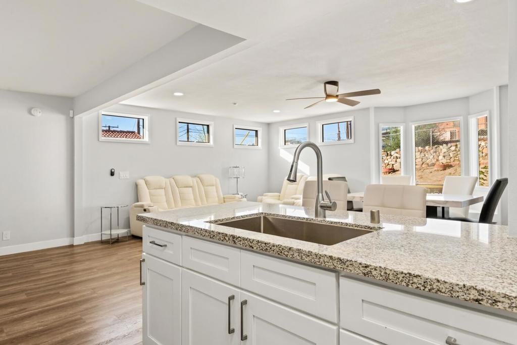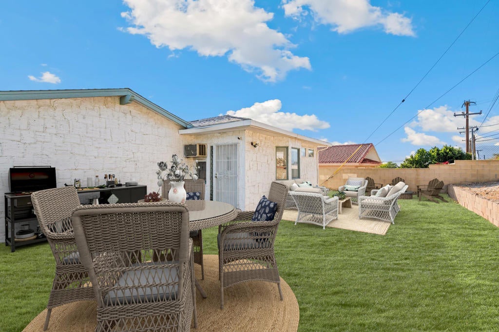 Welcome to this beautifully refreshed 4-bedroom, 2-bath home that's completely turnkey and filled with natural light throughout. The open-concept living room seamlessly connects to the kitchen and dining area, creating the perfect space for relaxing or entertaining. Enjoy laminate flooring in the main living areas and plush carpet in the bedrooms.The modern kitchen showcases stainless steel appliances, sleek countertops with bar stool seating, updated cabinetry, and ample storage -- perfect for home chefs and gatherings alike. Laundry hookups are conveniently located in the garage, which also features central air for year-round comfort. The primary bathroom is fully updated, and the spacious primary bedroom offers a large walk-in closet with custom built-in drawers for added storage and style.Take in the mountain views from both the front and back of the home, and enjoy the large backyard -- a blank canvas ready for your creative touch.